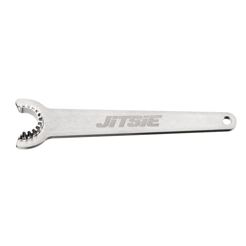 The Jitsie ISIS bottom bracket key is designed to make installing and removing ISIS bottom brackets fast and effortless. Its smart design also allows you to tighten a slightly loose bottom bracket without removing the cranks, saving time during setup or maintenance. A must-have tool for every trials rider and mechanic.