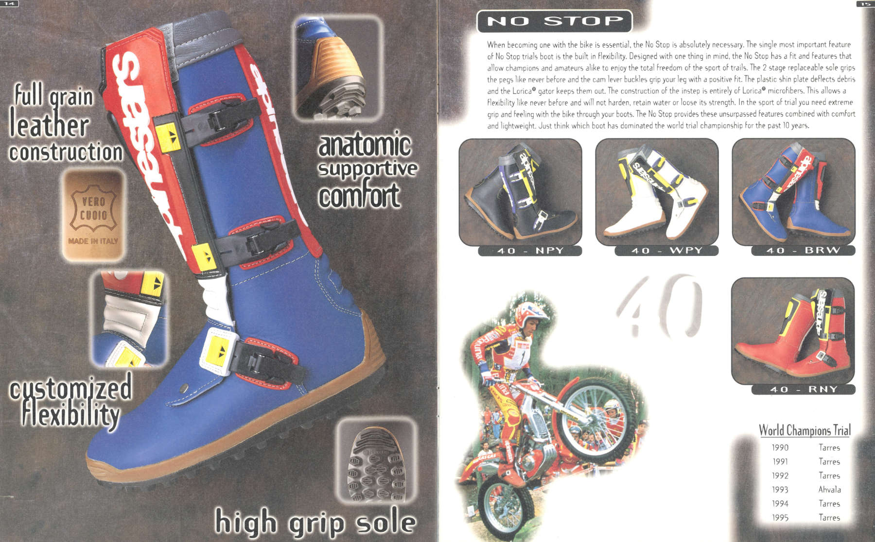 From the early ‘Schreiber edition’ boot through the evolution of the NoStop and on to the current Tech T boot, legends such as Thierry Michaud, Jordi Tarres, Dougie Lampkin and the greatest trials rider of all time, Toni Bou have all had their say in how the boots should feel and how they should strike the perfect balance between performance and protection.