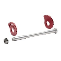 High-performance rear wheel spindle kit designed to replace the original spindle, snail cams and nut.