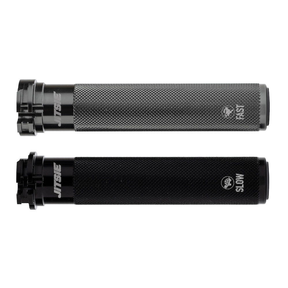 The Jitsie aluminium throttle sleeve Race is a premium upgrade for trials riders looking for maximum durability and precision. CNC-machined from lightweight aluminium, it features a built-in bearing for smoother throttle action and a knurled outer surface for perfect grip retention. A rubber cover protects the bearing from dirt and damage, making it the ultimate high-performance alternative to standard plastic sleeves.
