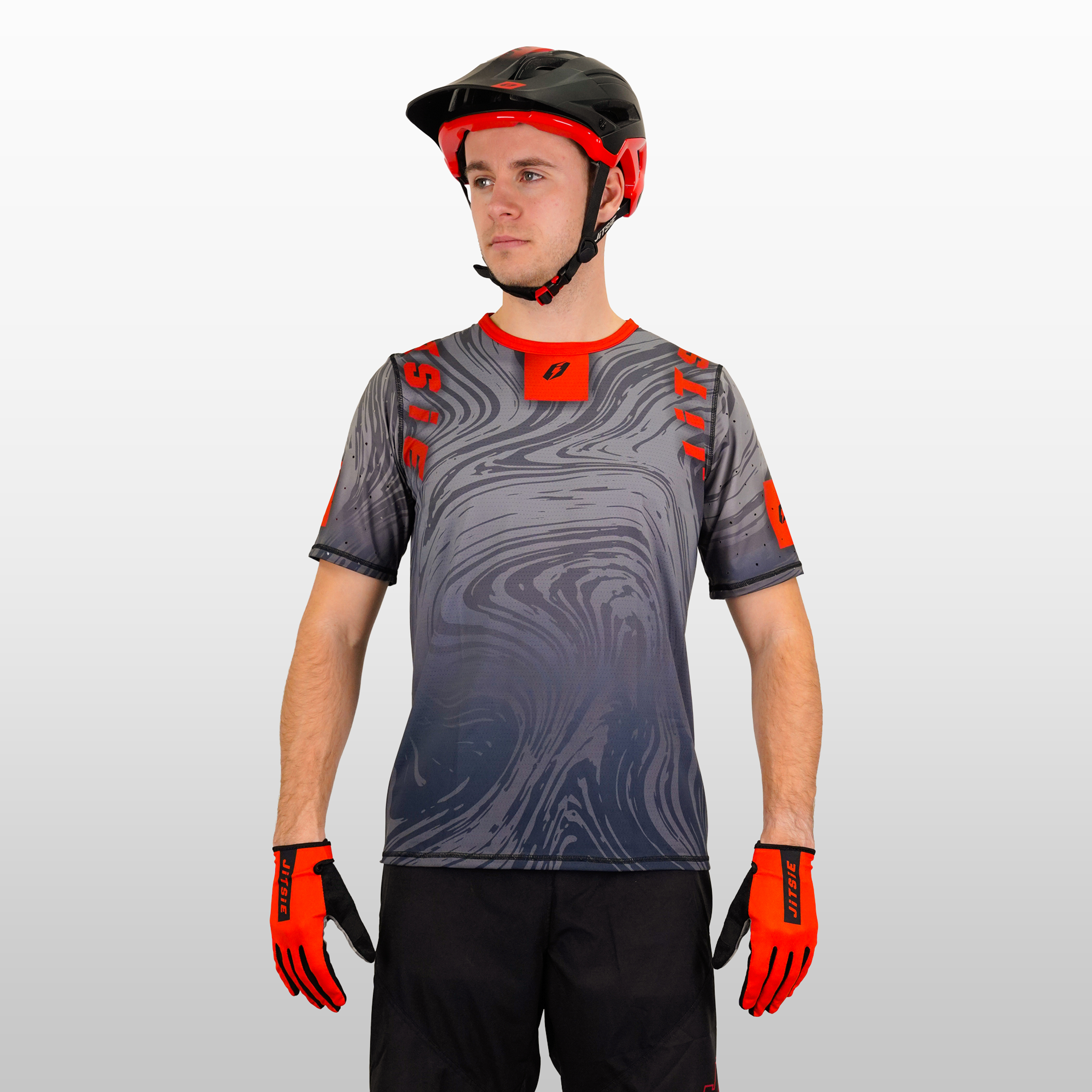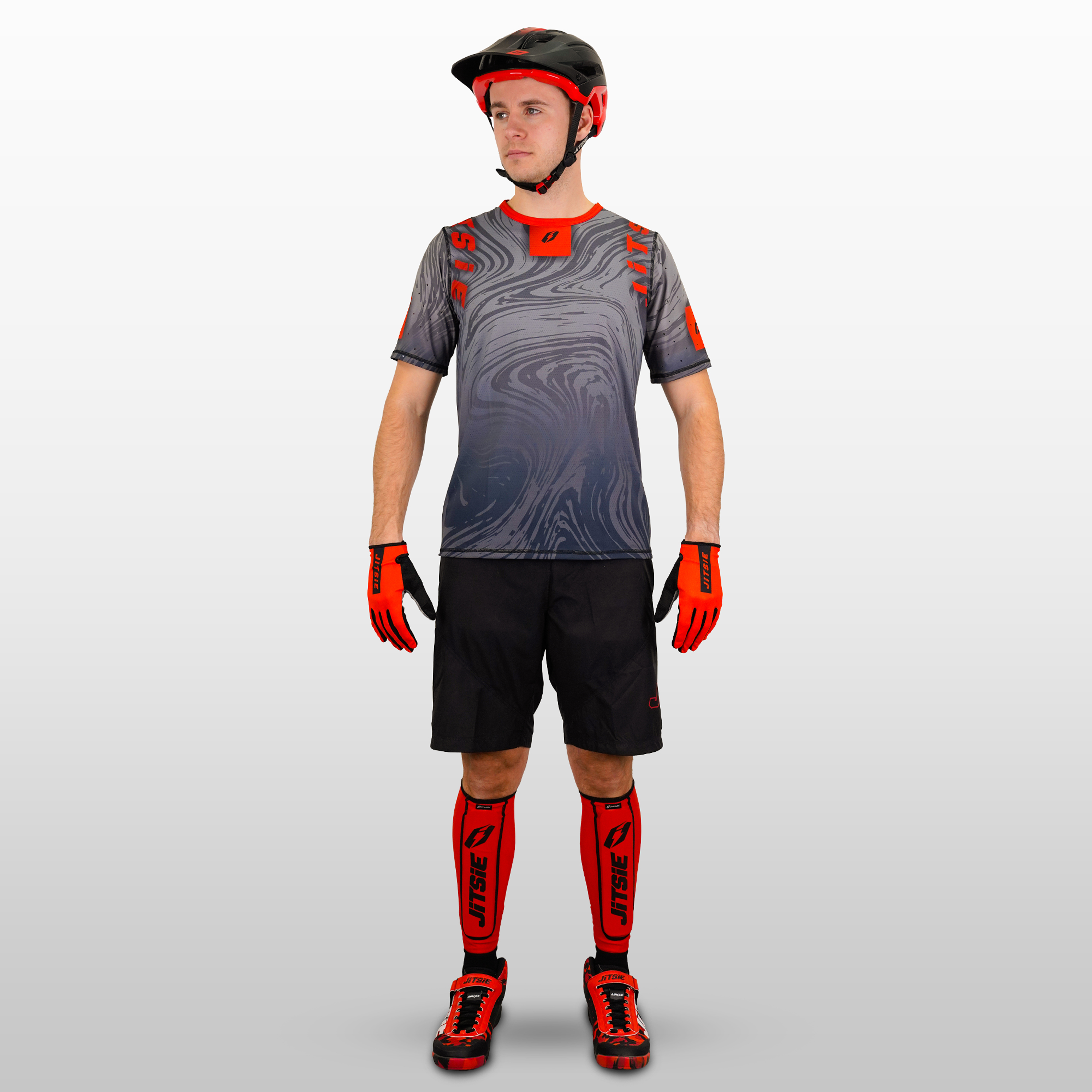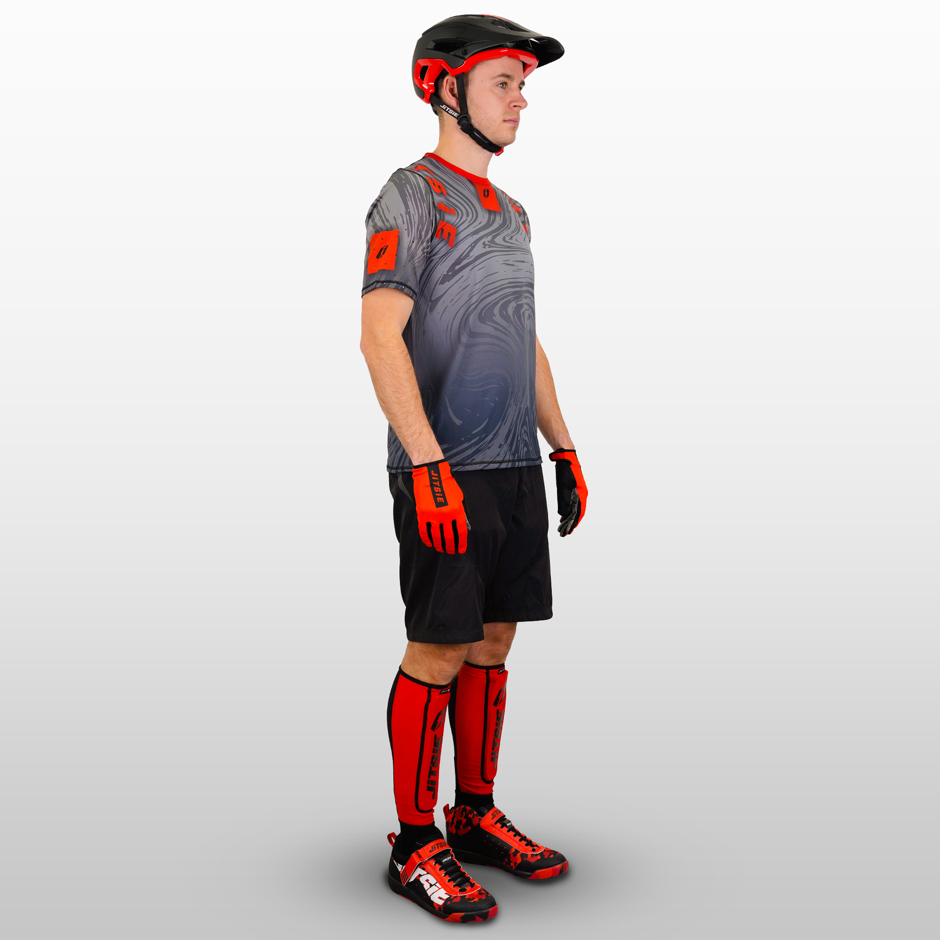 Model is 1.80m (5'11") tall, weighs 75kg (165 lbs), and wears size Medium jersey and pant.