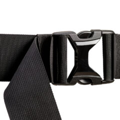 - elastic band on each side of the waist closure buckle securely fastens excess waist strap