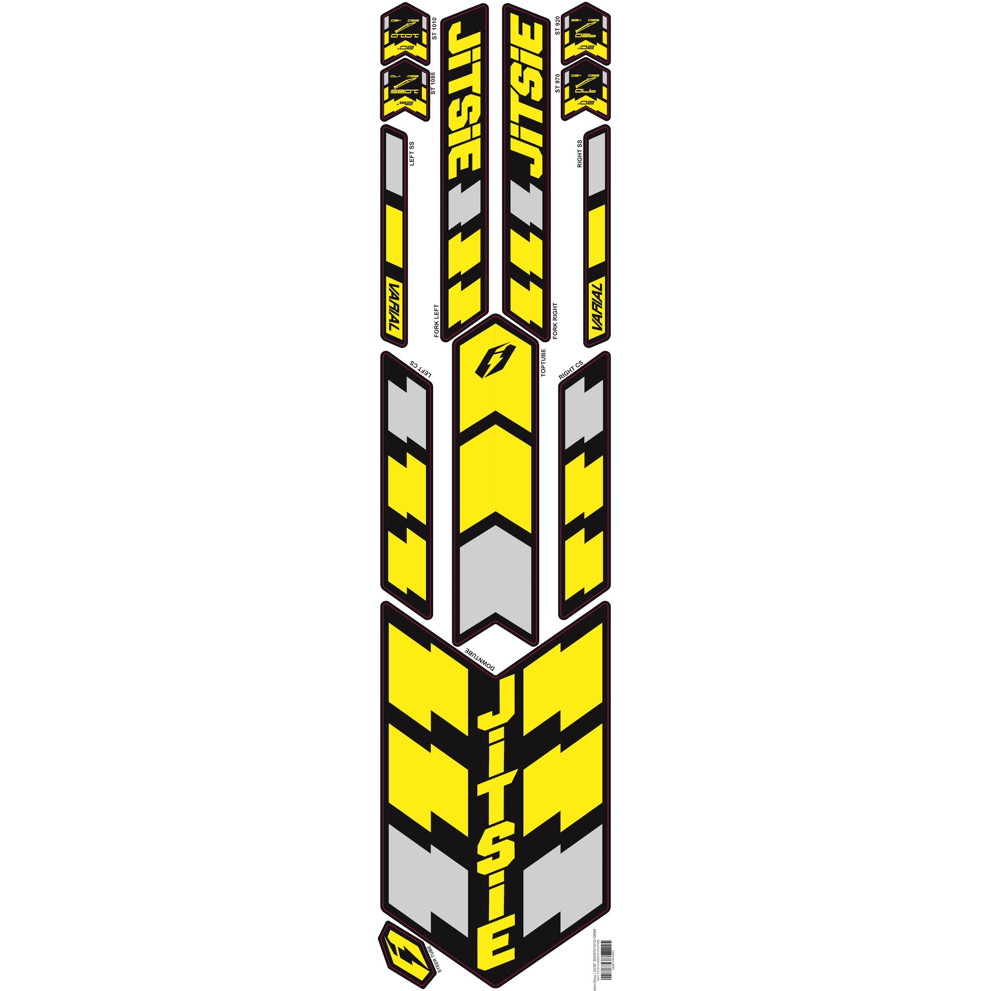 The Jitsie Varial 18/20/24/26″ bike sticker kit is the complete decal set for your Varial frame and fork. Whether you’re refreshing your bike’s look or replacing damaged decals after rides, this kit ensures your Varial bike returns to full visual spec. All original graphics are included in one easy package.