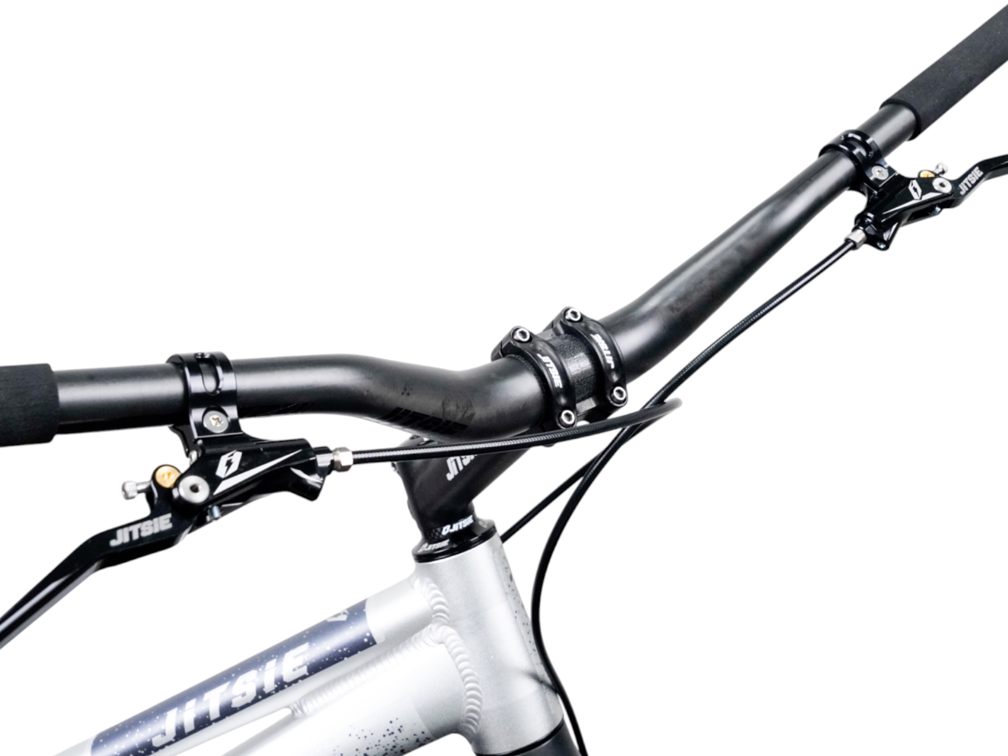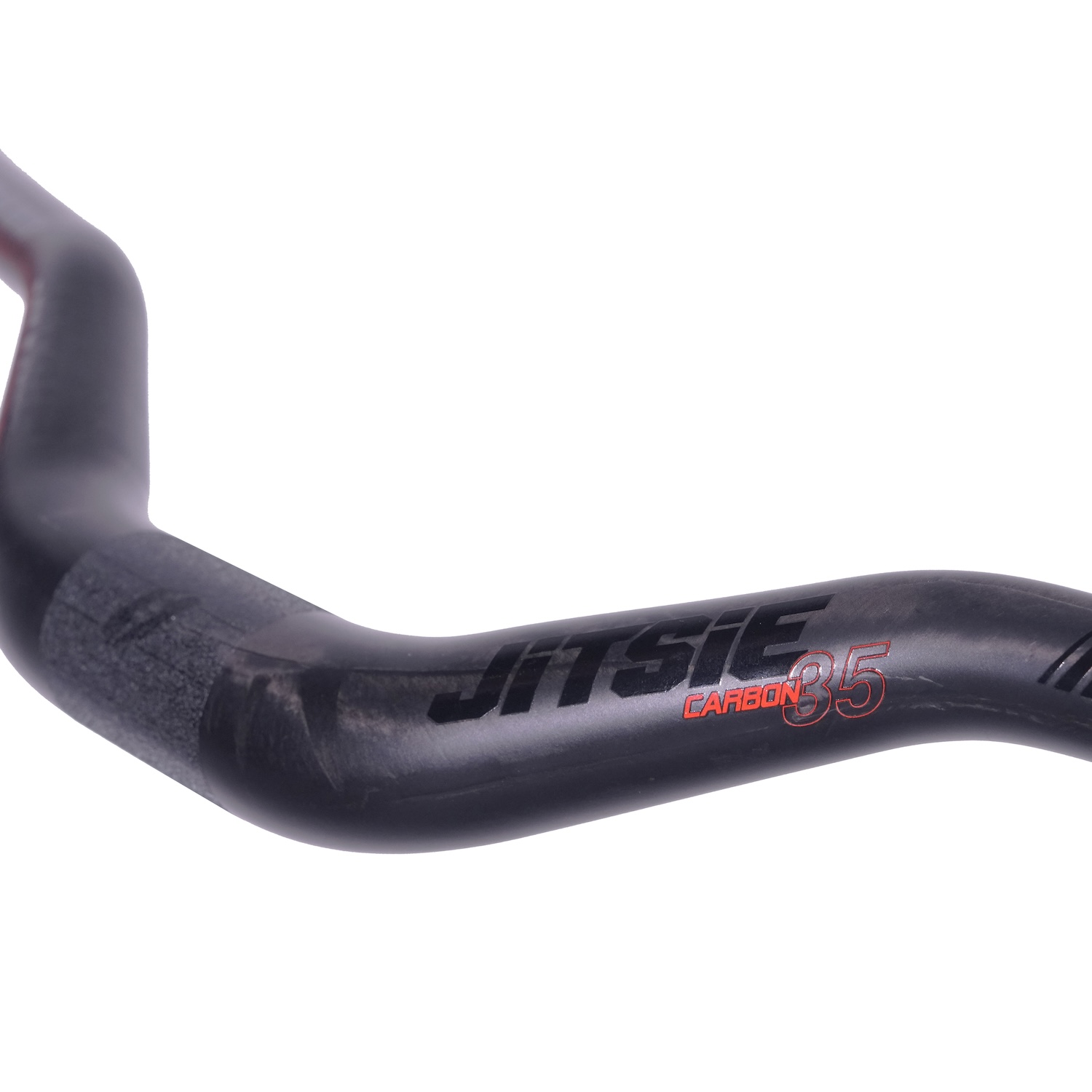 The Jitsie carbon handlebar 35mm Race sets a new benchmark for strength and precision control. Designed with a 35mm diameter clamping area, it offers a larger surface for the stem to grip — resulting in a stronger, more secure connection. This prevents the handlebar from slipping forward during powerful moves and impacts, giving you total confidence on the bike.