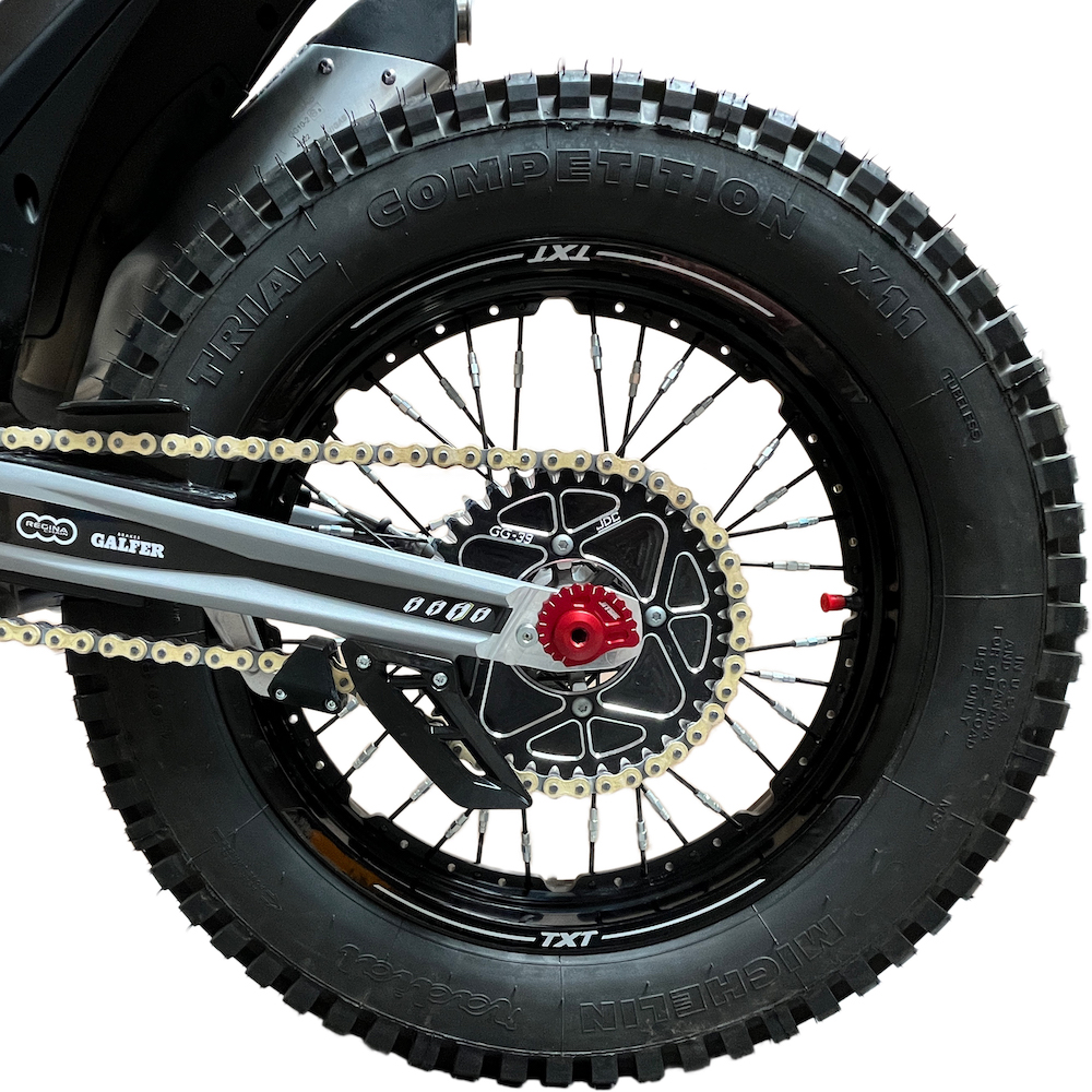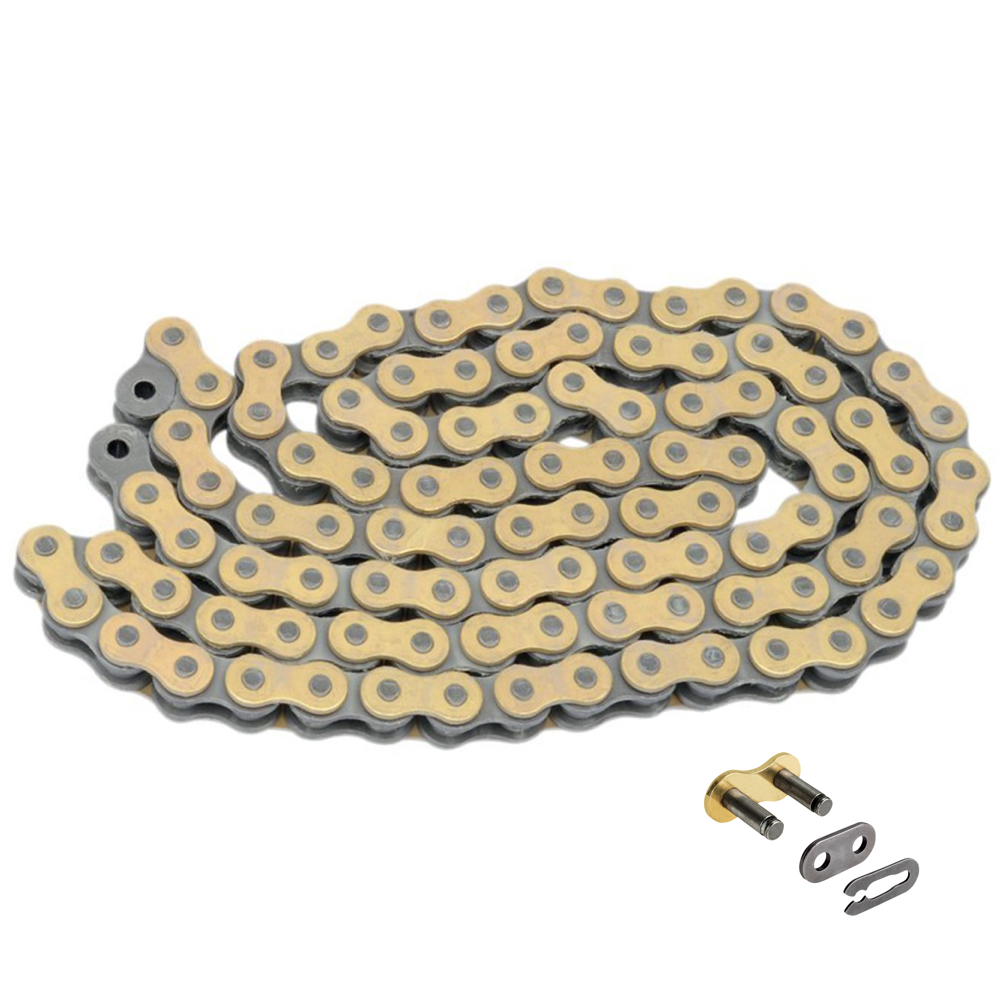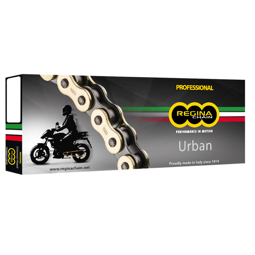 Regina 520 EB-ORO Chain is a premium non-sealed chain trusted by trials riders worldwide. Built with heat-treated components and finished with the signature gold outer plates, it combines strength, smooth power transfer, and long-lasting durability. Available in multiple lengths to suit different setups, with the 103-link version including a riveted half link for a perfect fit.