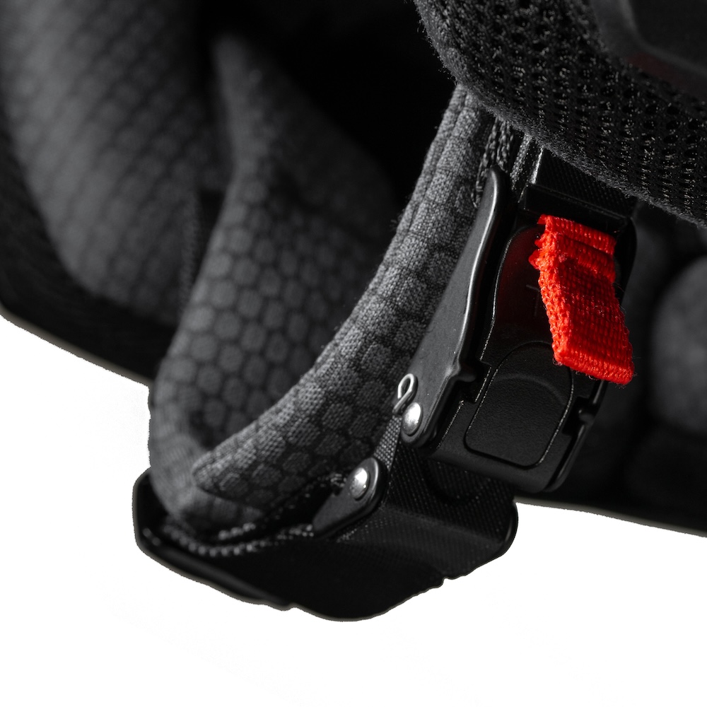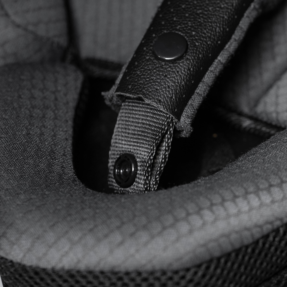 One side features a small elastic loop to guide the helmet’s chin strap, keeping everything neatly in place and preventing direct contact between the strap and your skin. The pads securely fasten using two SNAPFIT buttons for a perfect fit and quick installation.