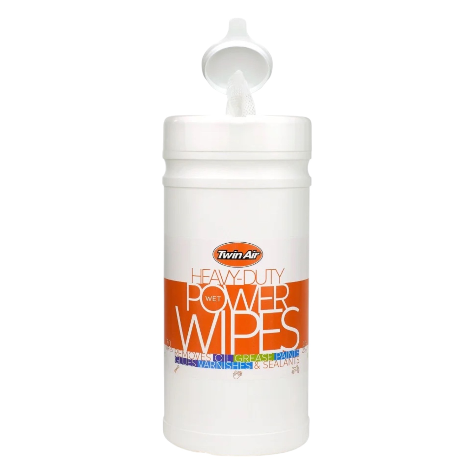 Twin Air Heavy-Duty Wet Power Wipes are pre-moistened wipes designed for quick and easy cleaning of your hands, tools, and surfaces in the workshop or at a trial. Tough on dirt, grease, and oil yet gentle on skin, they are the perfect solution when water and soap aren’t available.