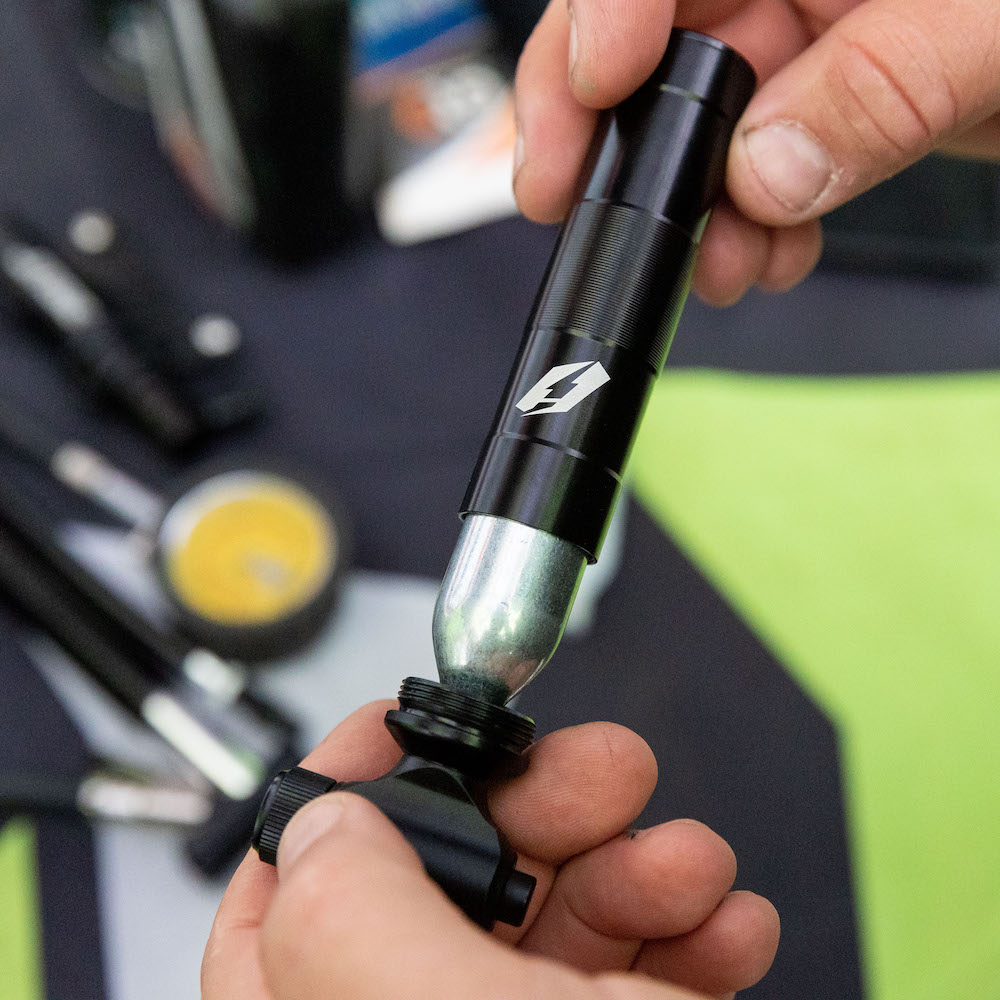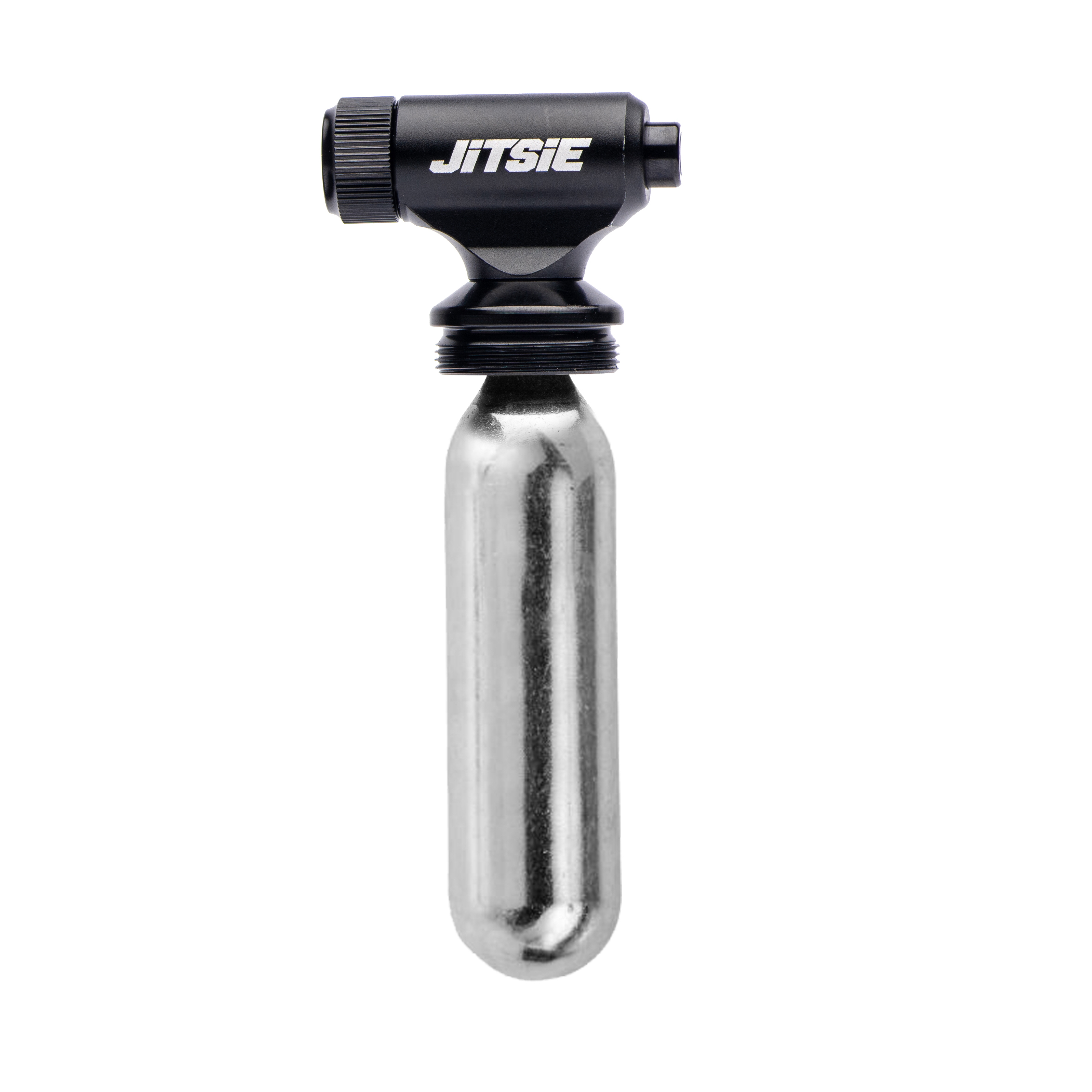 The Jitsie CO₂ valve is designed for fast and easy tyre inflation during training or competition. Compact and lightweight, it works with standard threaded CO₂ cartridges and features a precision pressure release button to control inflation accurately.