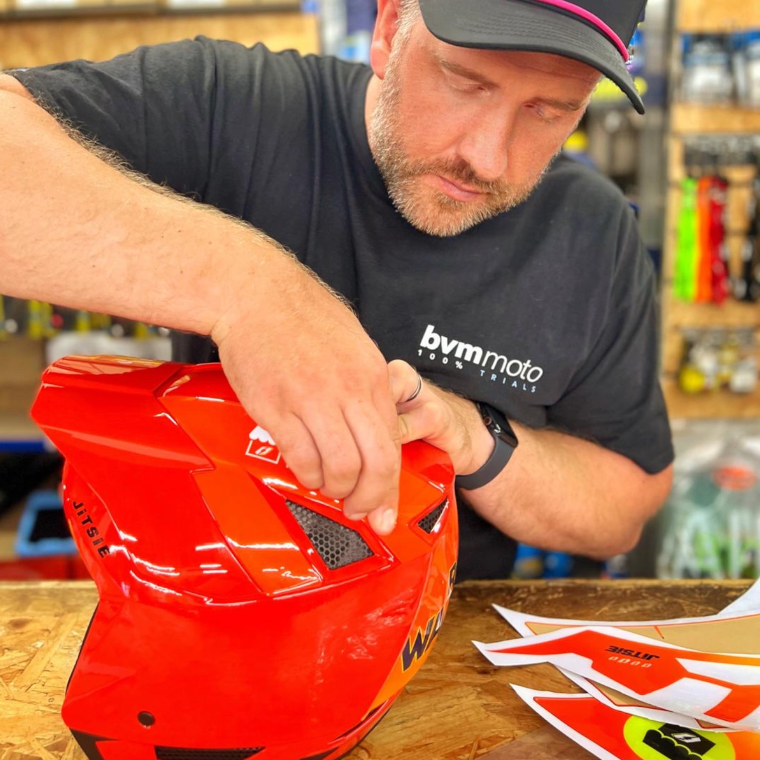 - ⚠️ Do not use heat. This special helmet vinyl is designed to stick without shrinking or stretching. Apply dry and press firmly for best result.