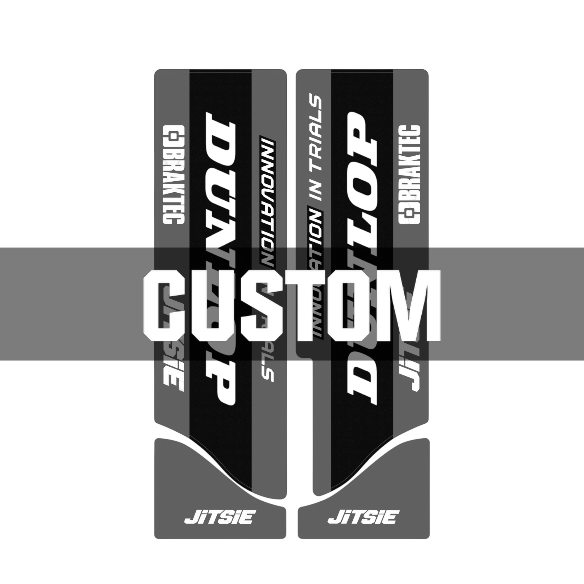 The Jitsie fork stickers are designed to protect the lower fork legs from scratches, stone chips and wear caused by regular trials riding. At the same time, they add a factory-style finish that complements modern and classic trials bikes alike.