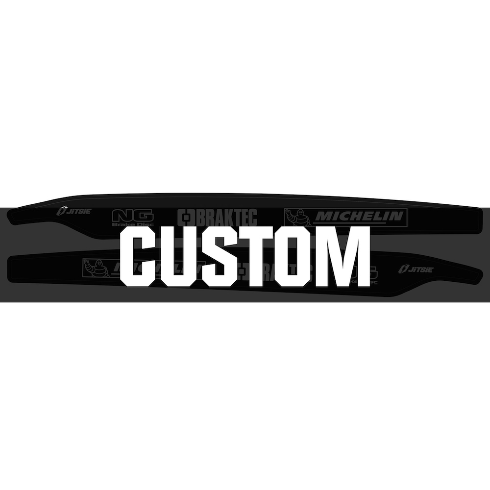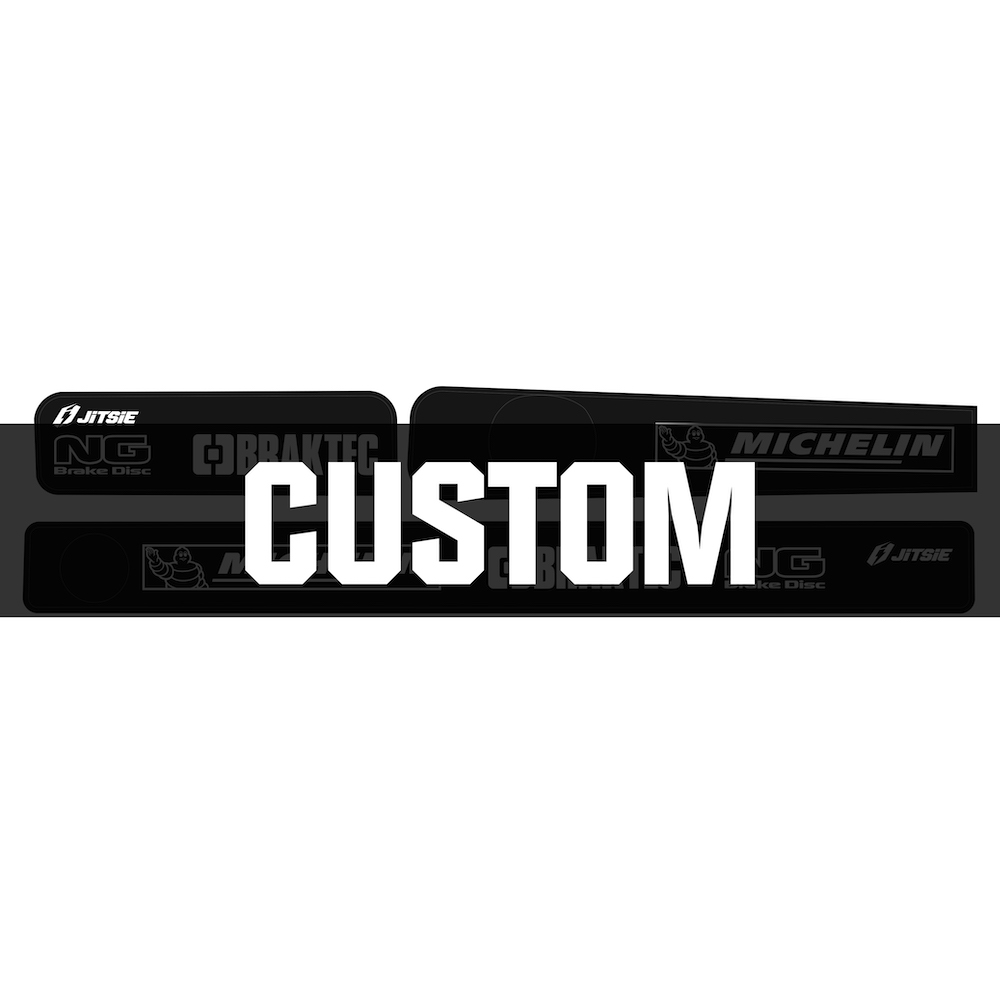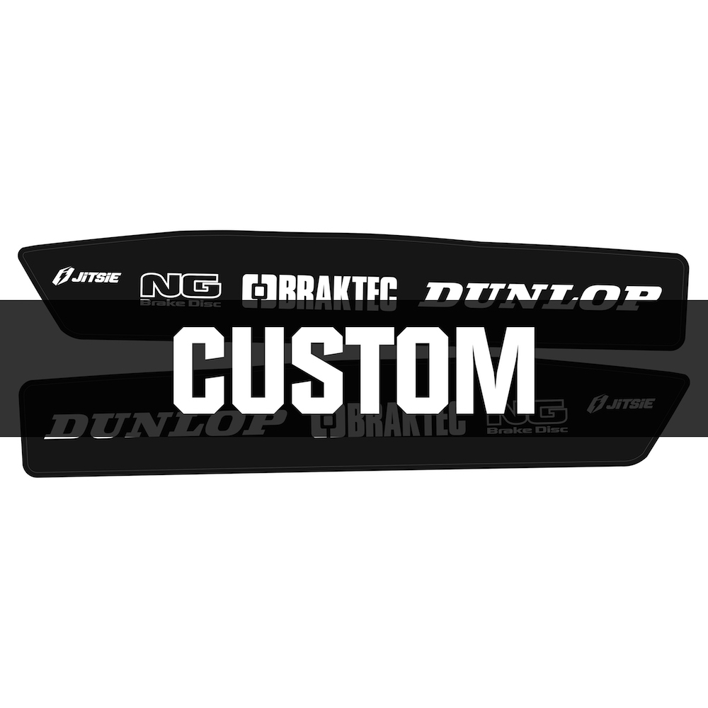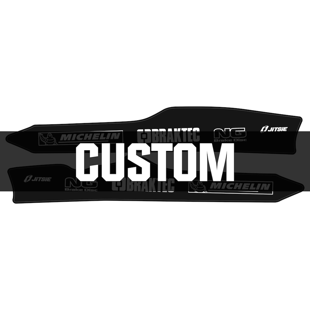 Jitsie custom swingarm stickers are the perfect way to protect and personalise your trials bike. Made from durable, thick vinyl with a strong adhesive backing, they shield the swingarm from scratches and boot wear while adding a clean, factory look. Available as part of our Go Custom programme, you can add your sponsor logos to create a unique design that stands out on and off the sections.
