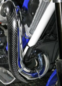 The Jitsie carbon exhaust pipe protector safeguards one of the most exposed parts of a trials bike. Made from premium carbon fibre, it delivers outstanding protection against impacts, dents, scratches, and also helps prevent burns from contact with the hot exhaust. Lightweight yet extremely durable, it fits neatly over the header pipe and is secured in place with stainless steel clamps for a clean, factory-style finish.