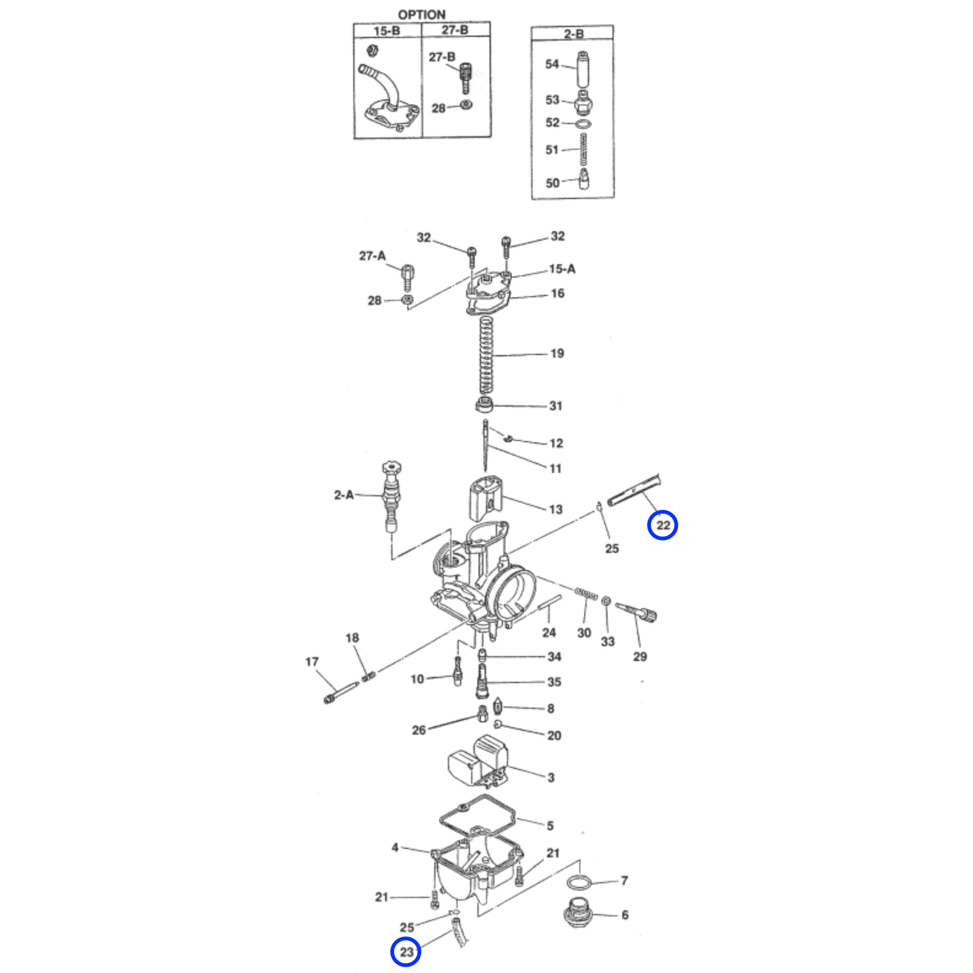 The Jitsie float bowl and overflow pipe kit for Keihin PWK 28 mm carburettors replicates the original Keihin hoses in both look and fit. These transparent pink tubes are manufactured to OEM specifications, ensuring a perfect replacement for worn or discoloured originals while keeping the authentic factory appearance.