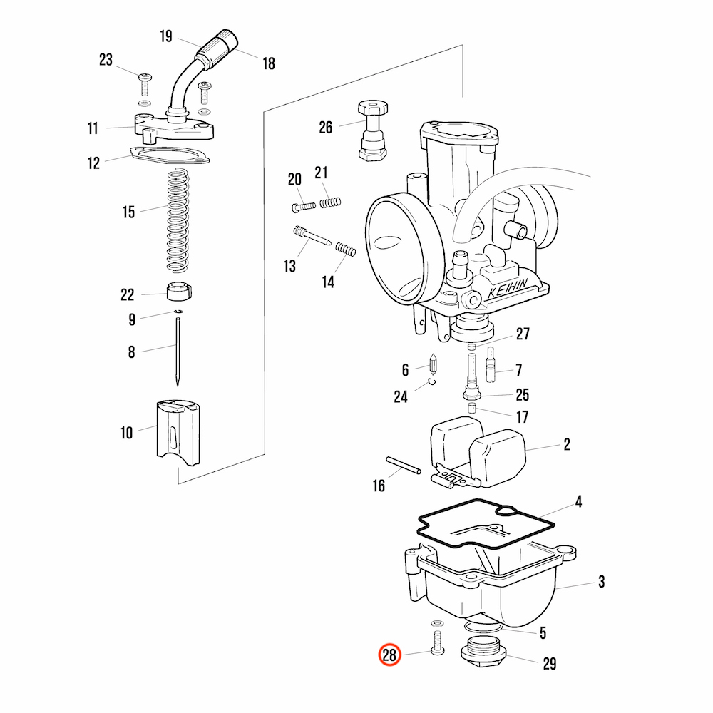 The Jitsie float bowl screws for Keihin PWK 28mm carburettors are OEM-style replacements designed to secure the float bowl to the carburettor body. Manufactured to the same dimensions and head design as the original Keihin screws, they ensure a perfect fit and reliable fastening.