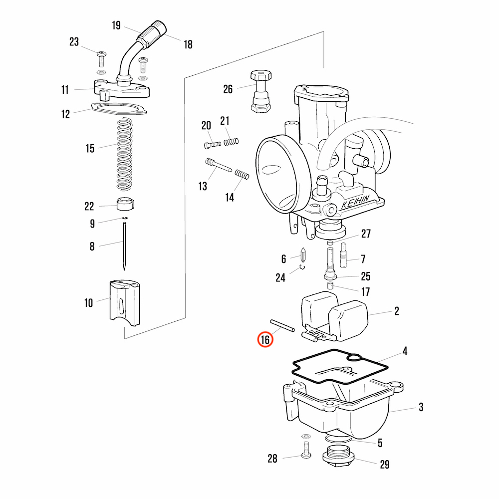 The Jitsie float pin for Keihin PWK 28mm carburettors is a small but essential component that secures the float in place inside the float bowl. It allows the float to pivot freely and control fuel flow into the carburettor.