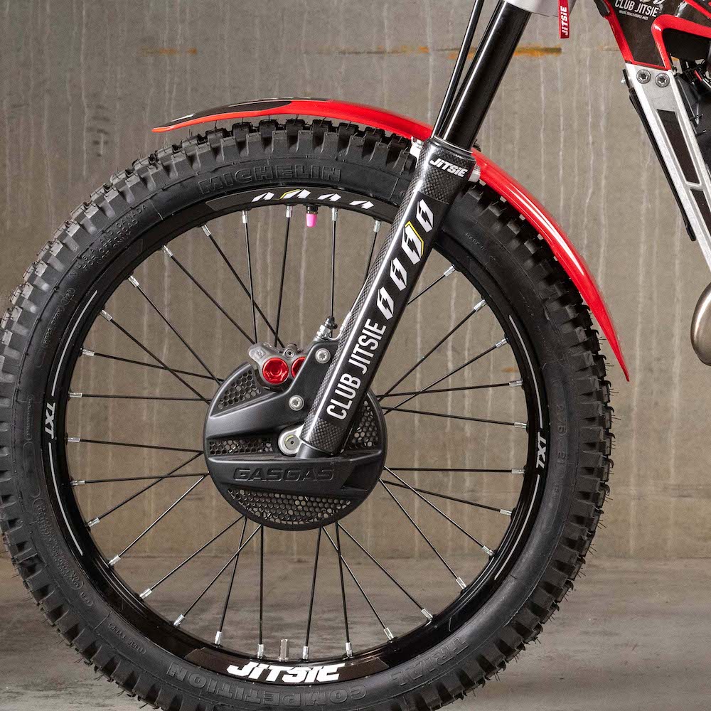 Exclusive Club Jitsie fork stickers to protect the lower front fork from getting scratched while riding and add a real pro look to the bike!