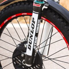 The Jitsie fork stickers are designed to protect the lower fork legs from scratches, stone chips and wear caused by regular trials riding. At the same time, they add a factory-style finish that complements modern and classic trials bikes alike.