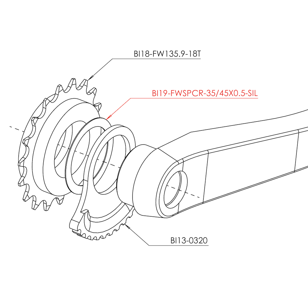 - ensures correct freewheel bearing clearance and avoids contact with the bash ring or surrounding parts