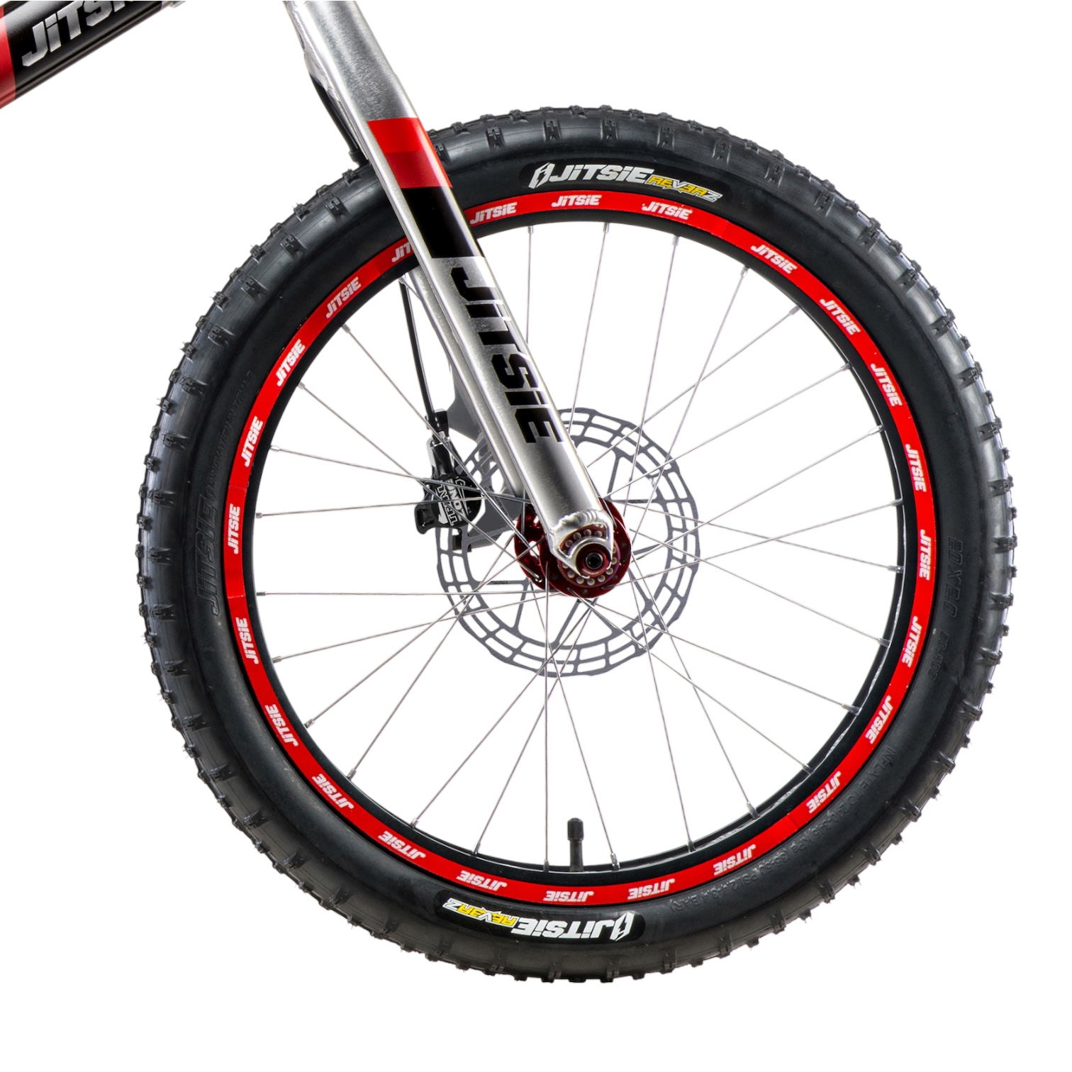 The Jitsie Race front disc is designed to deliver maximum braking performance. Laser-cut from high-end steel, it combines minimal weight with outstanding strength and durability. The optimized pad contact area provides powerful, consistent braking feel — especially when paired with Jitsie Race brake pads.