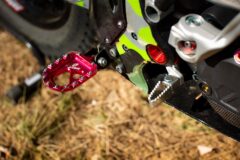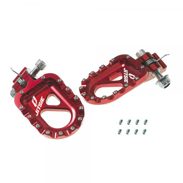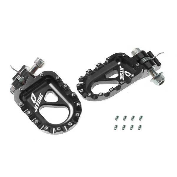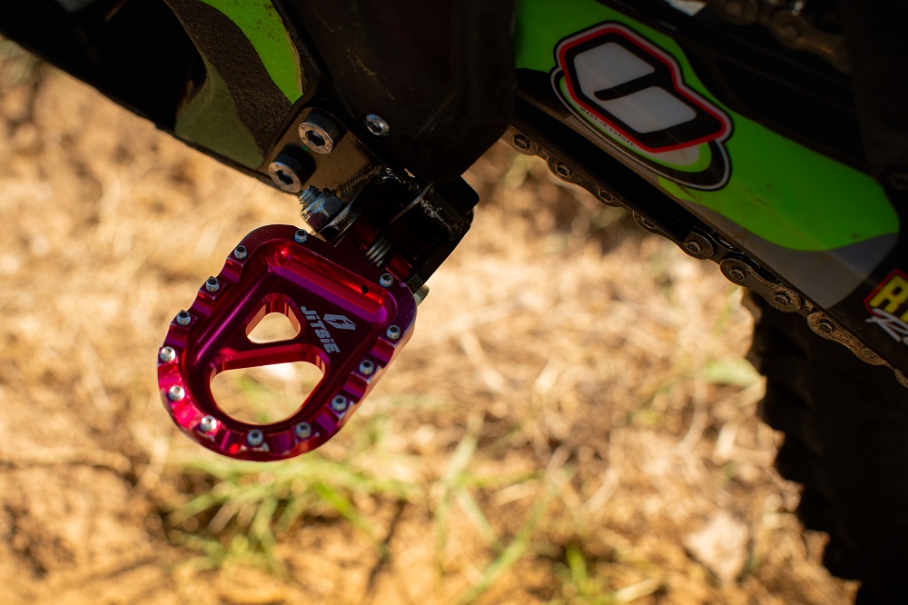 The Jitsie Grip aluminium footpegs are designed to deliver a perfect balance between lightweight performance and confident grip. Machined from high-quality aluminium, these pegs offer precise feel and stability without adding unnecessary weight. The wide platform and sharp teeth provide excellent traction, keeping your feet planted through every section.
