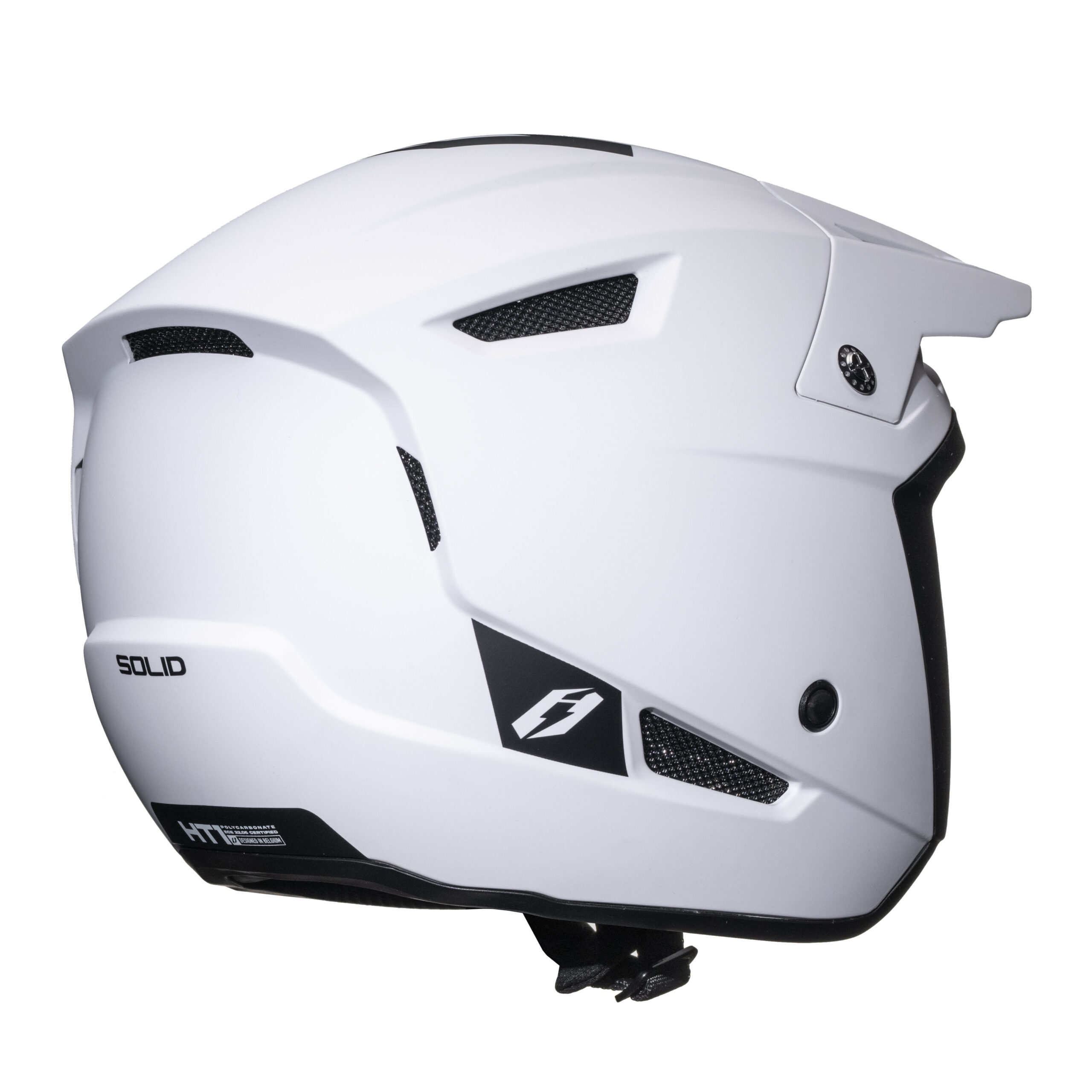The Jitsie HT1 helmet sets a new benchmark for modern trials helmets. As the first trials helmet with a seamlessly integrated peak, it delivers a clean and stylish look on the bike. Designed in Belgium and certified to the latest CE22.06 standard, the HT1 offers serious protection in a lightweight package. With a wide choice of colours and graphics, there’s an HT1 to match every gear set.