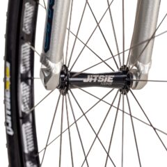 The Jitsie thru axle front hub Race is built for riders seeking a lightweight, precise, and race-ready front hub solution. CNC-machined from 7075-T6 aluminium with sealed bearings and a minimalist design, this hub balances strength, smooth rotation, and market leading low weight. Available in both HS and disc versions to suit your brake setup.
