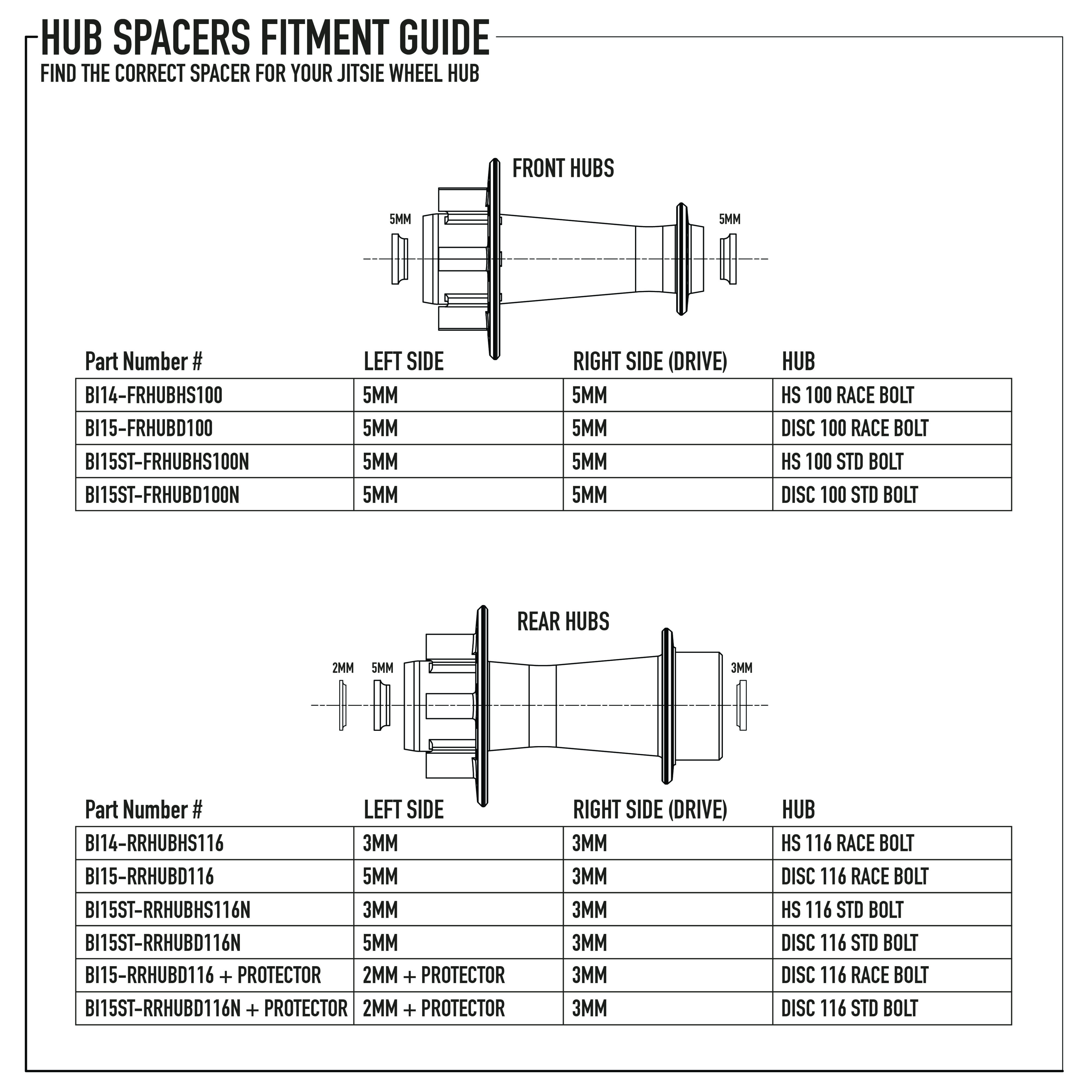 - Flexibility without changing parts – Rather than using a completely different hub or frame adjustment, the hub spacer allows you to adjust small errors or variations easily and economically.