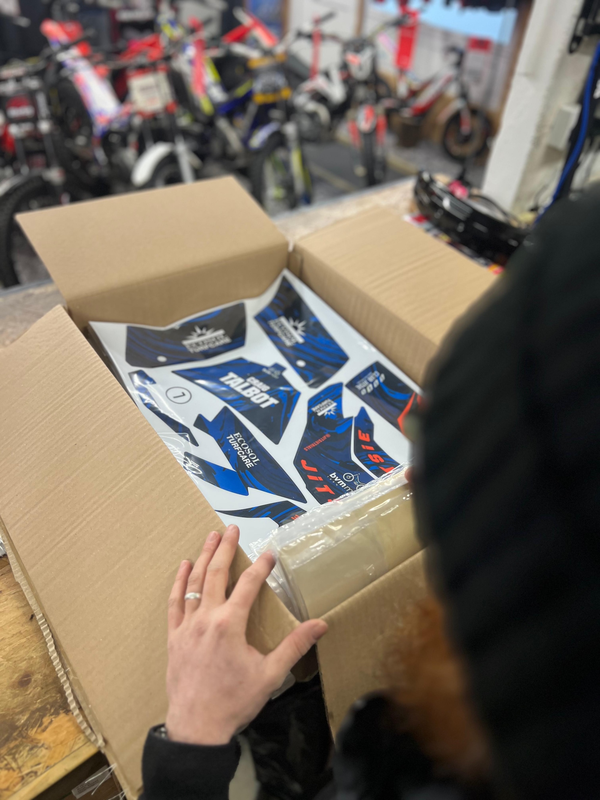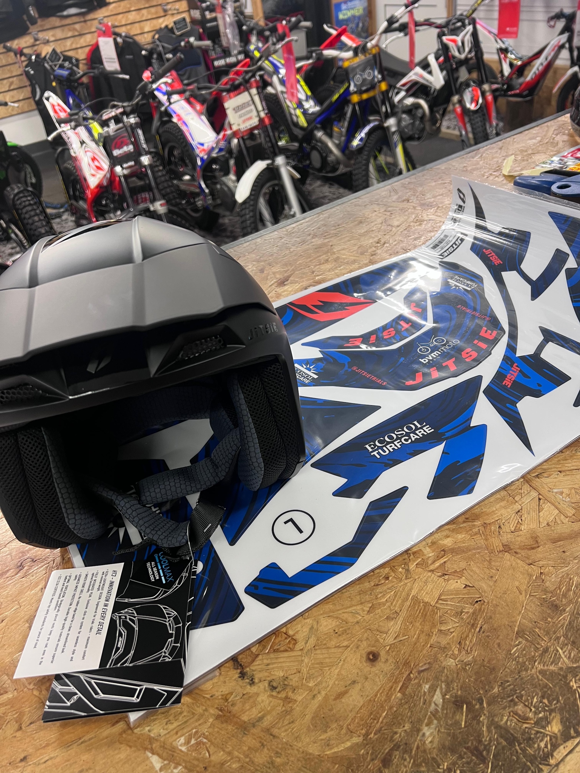 You then send us your preferred colours, logos, sponsors, rider name or number. Our team works directly with you to integrate these elements into the chosen base design and fine-tune the colours and layout so everything fits the helmet perfectly.