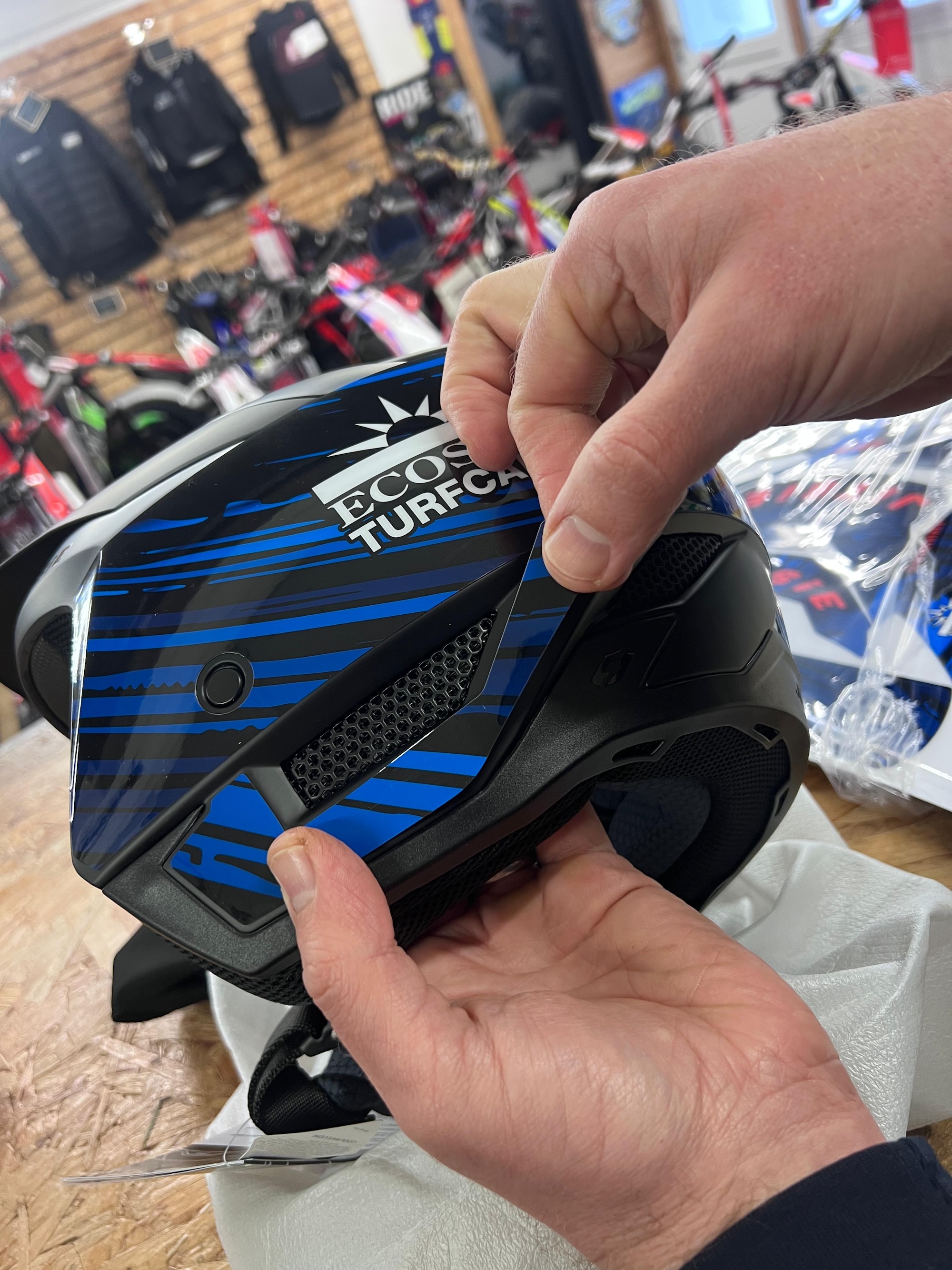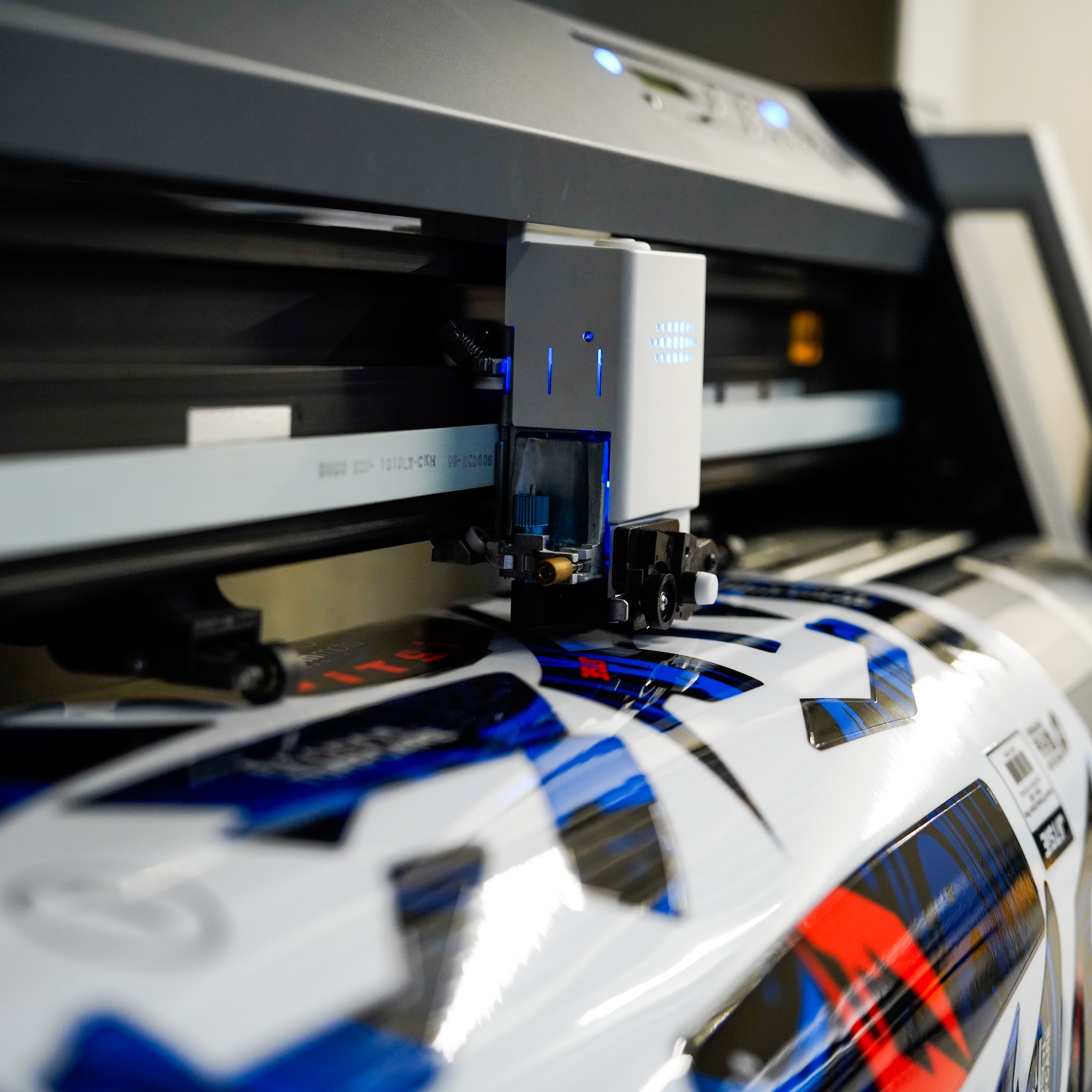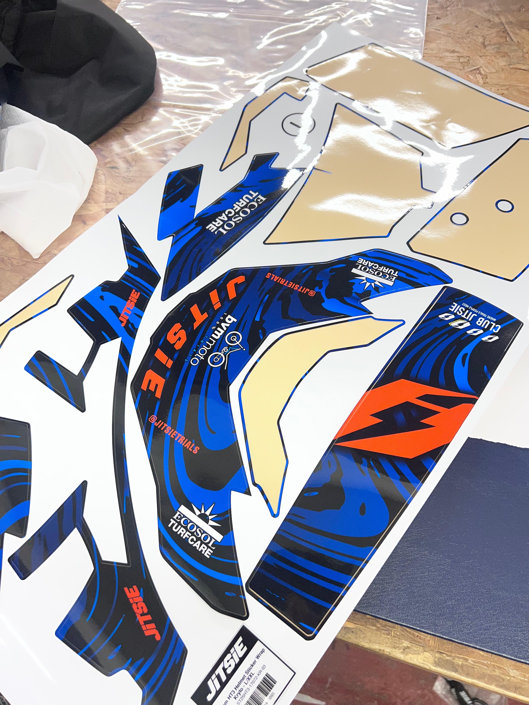 Once the design is approved, the wrap is printed using vinyl developed specifically for helmet applications. This ensures the right balance between durability, flexibility and finish.