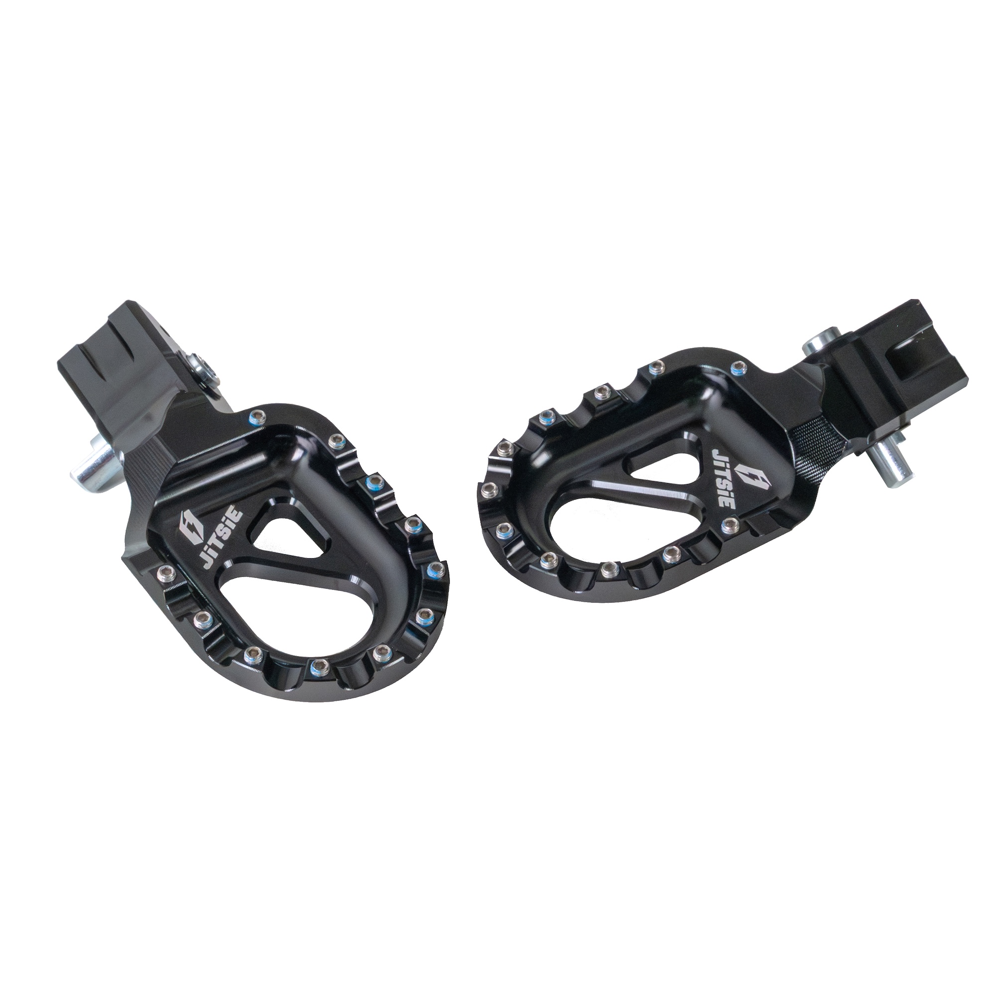 The Jitsie Grip aluminium footpegs are designed to deliver a perfect balance between lightweight performance and confident grip. Machined from high-quality aluminium, these pegs offer precise feel and stability without adding unnecessary weight. The wide platform and sharp teeth provide excellent traction, keeping your feet planted through every section.