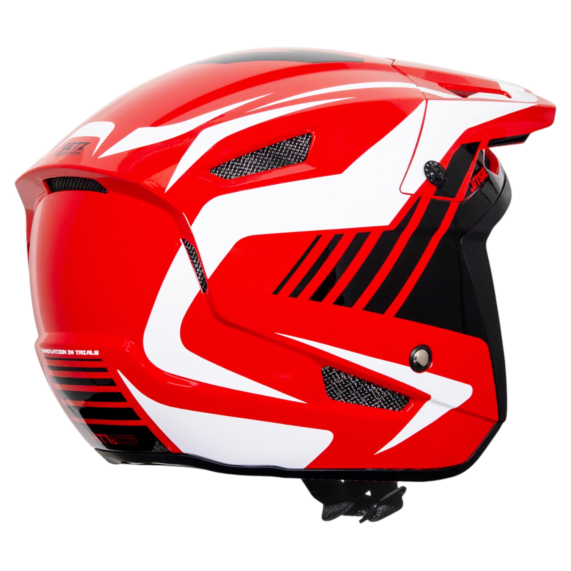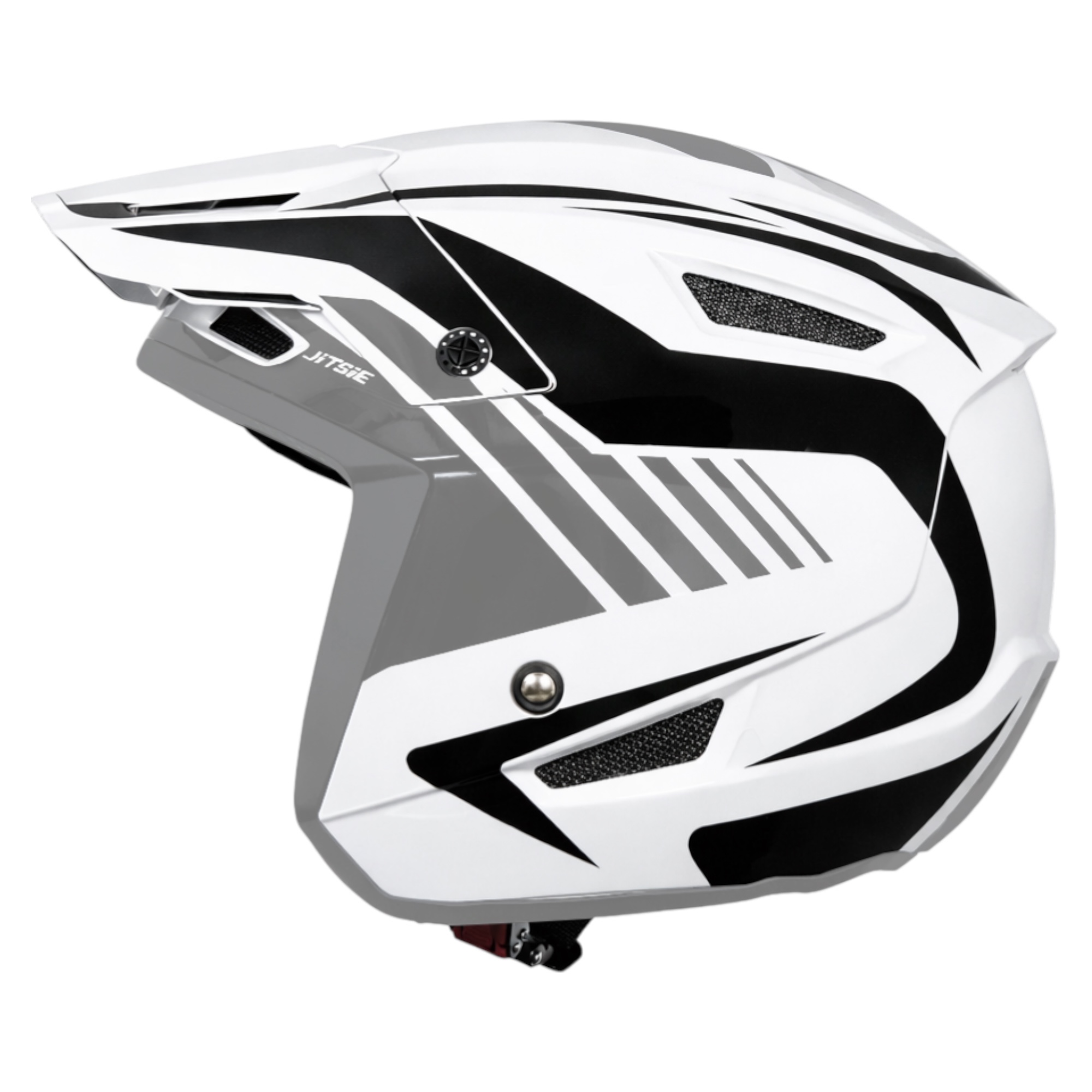 The Jitsie HT1 helmet sets a new benchmark for modern trials helmets. As the first trials helmet with a seamlessly integrated peak, it delivers a clean and stylish look on the bike. Designed in Belgium and certified to the latest CE22.06 standard, the HT1 offers serious protection in a lightweight package. With a wide choice of colours and graphics, thereās an HT1 to match every gear set.