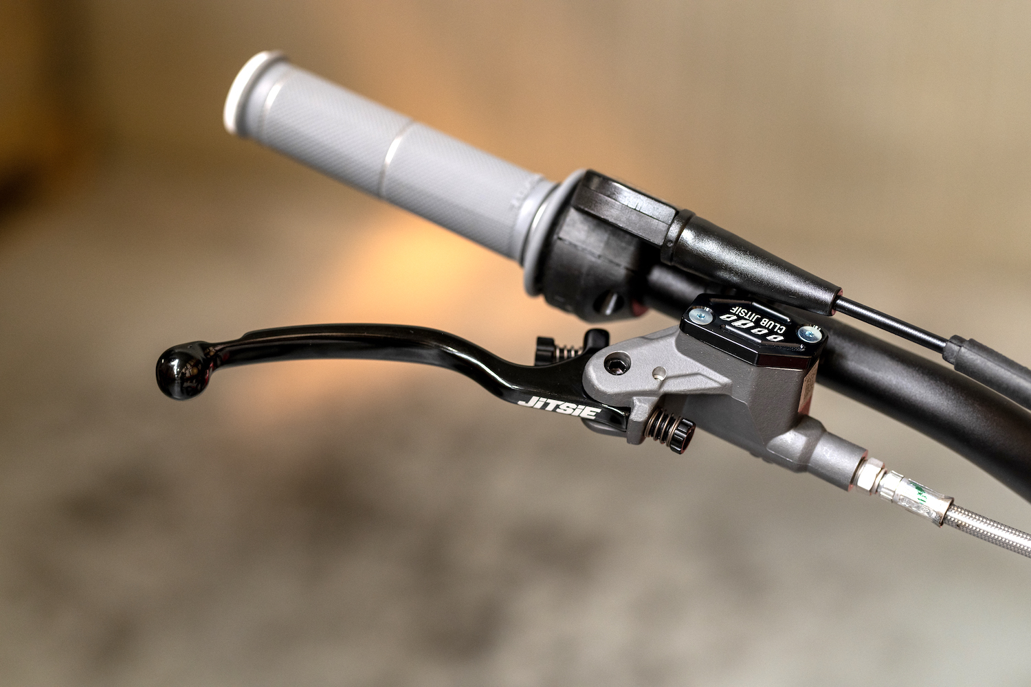The Jitsie lever play adjuster replaces the standard bolt and nut on an original lever and makes lever play adjustment quick and tool-free. With a simple turn, you can fine-tune clutch or brake play to your preference. Whether you want the clutch to engage earlier (more play) or later (less play) or the brake to work quicker (less play), this small adjuster makes a big difference in control and feel on the bike.