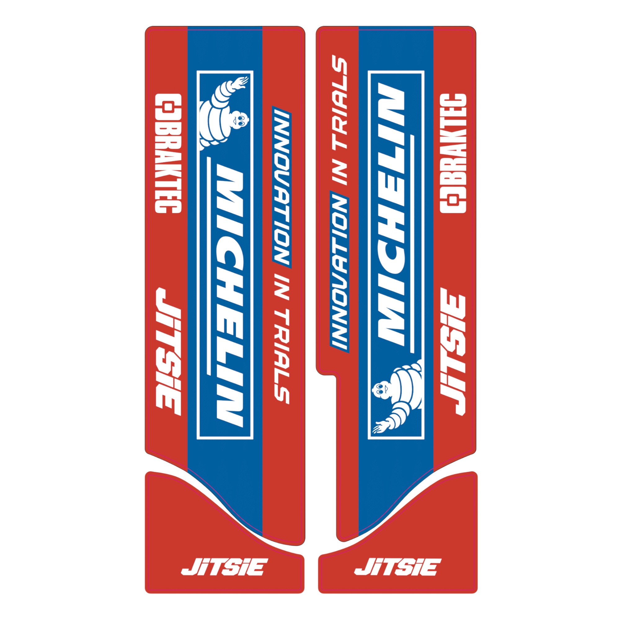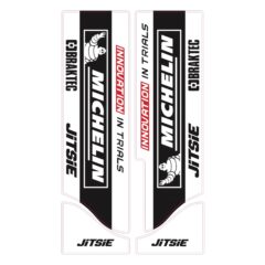 The Jitsie fork stickers are designed to protect the lower fork legs from scratches, stone chips and wear caused by regular trials riding. At the same time, they add a factory-style finish that complements modern and classic trials bikes alike.