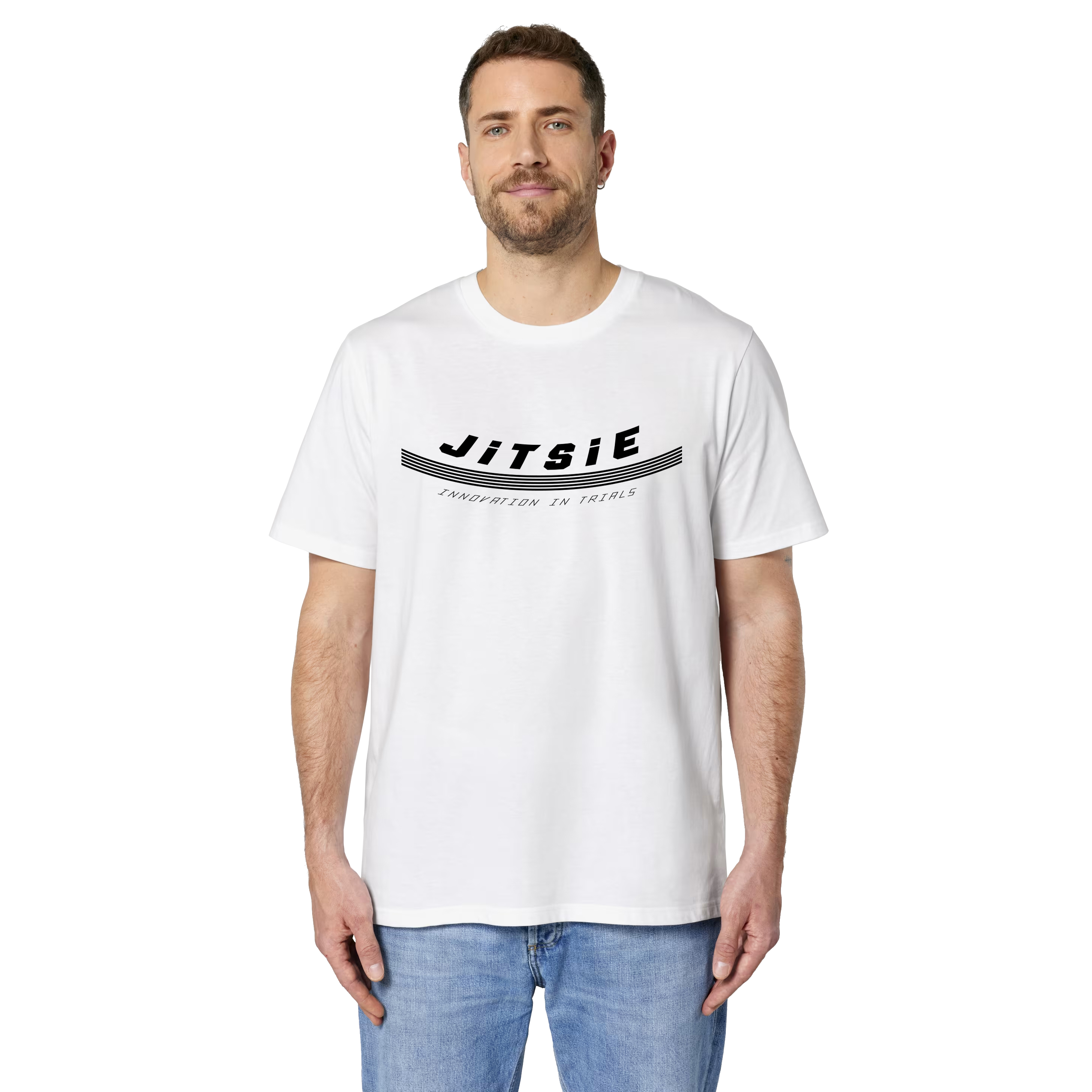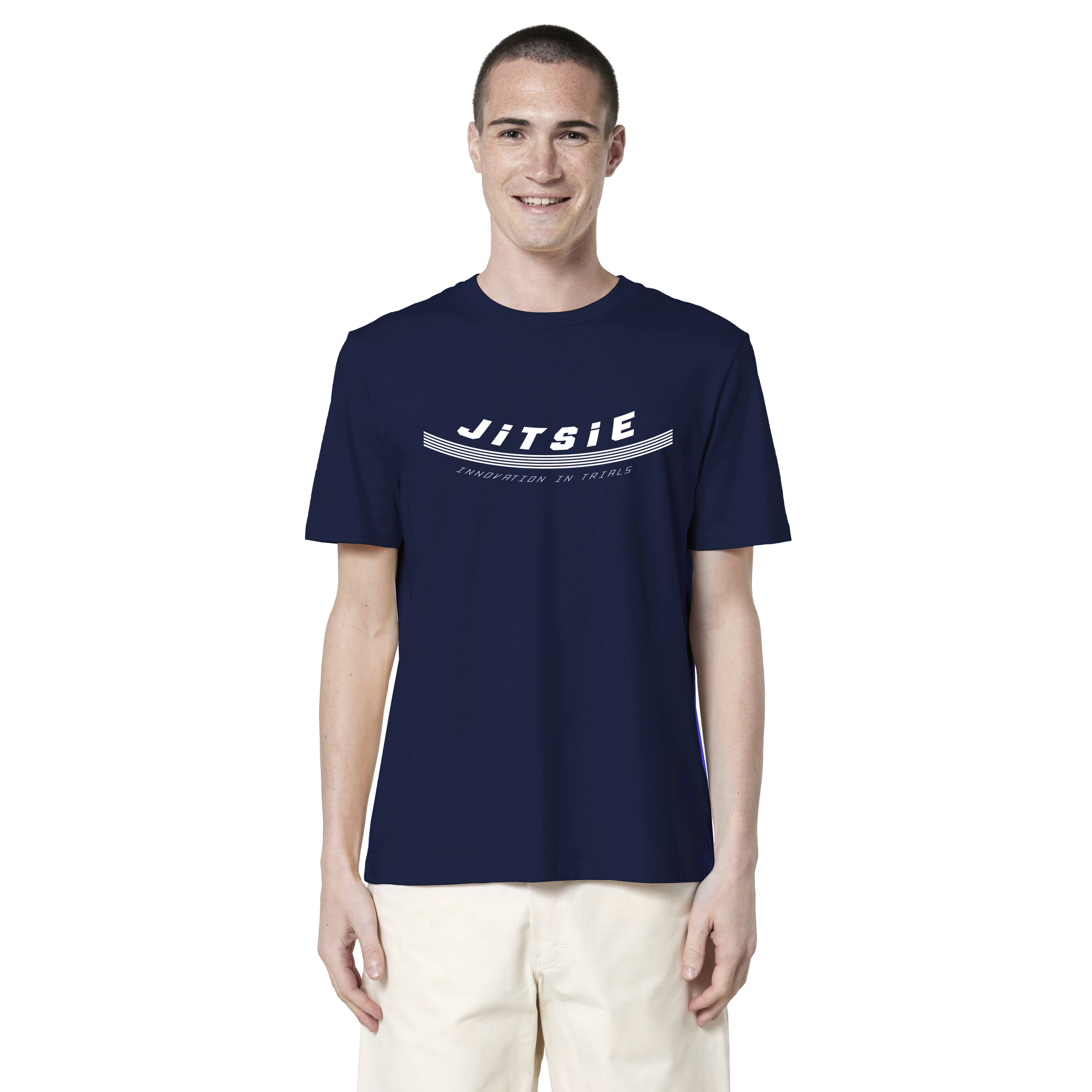 The Jitsie Stykko t-shirt features a bold, confident graphic built around our “Innovation in Trials”message. Curved lines and strong typography give it a purposeful look that reflects the technical DNA of the Jitsie brand.