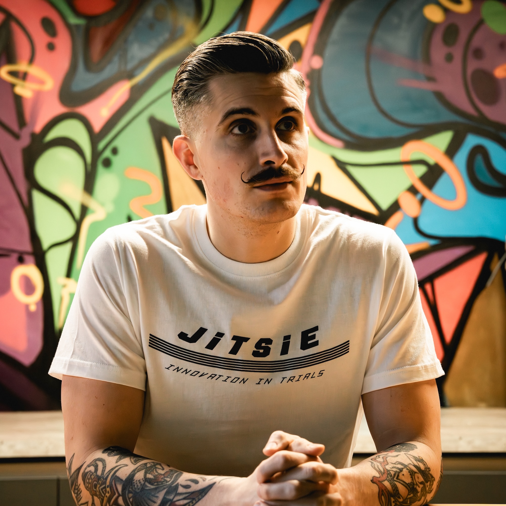 - Stykko graphic with Jitsie logo and “Innovation in Trials” detail
