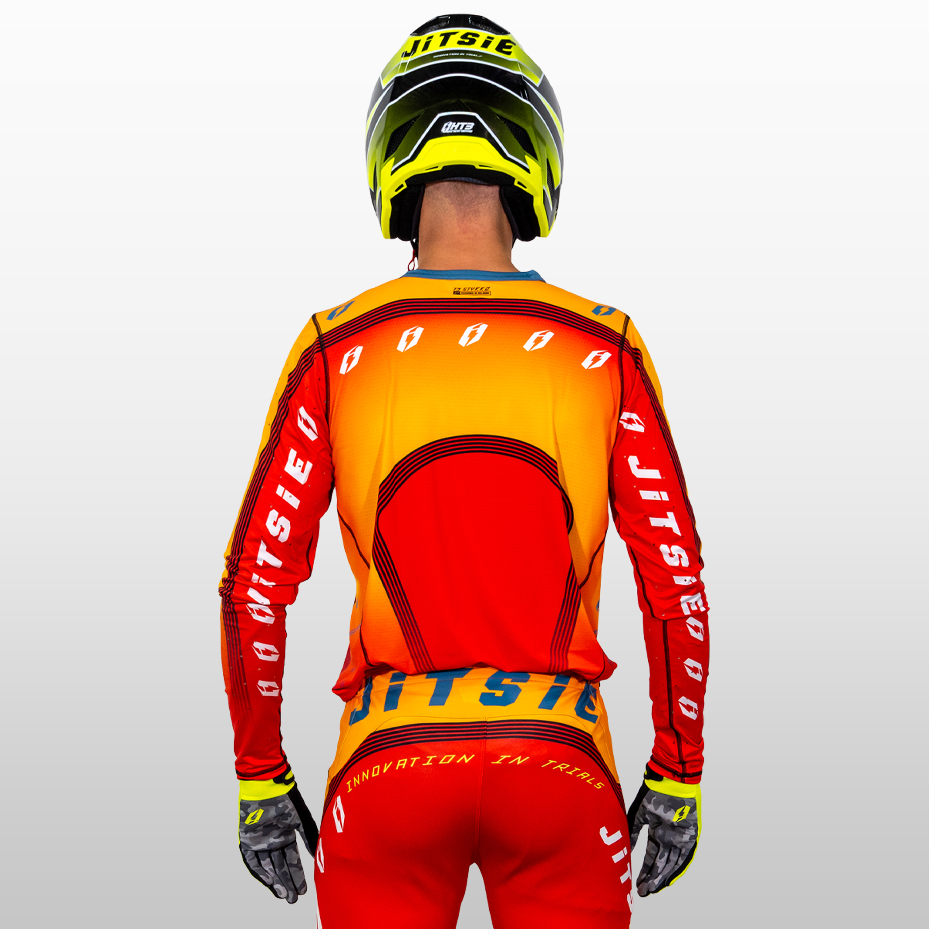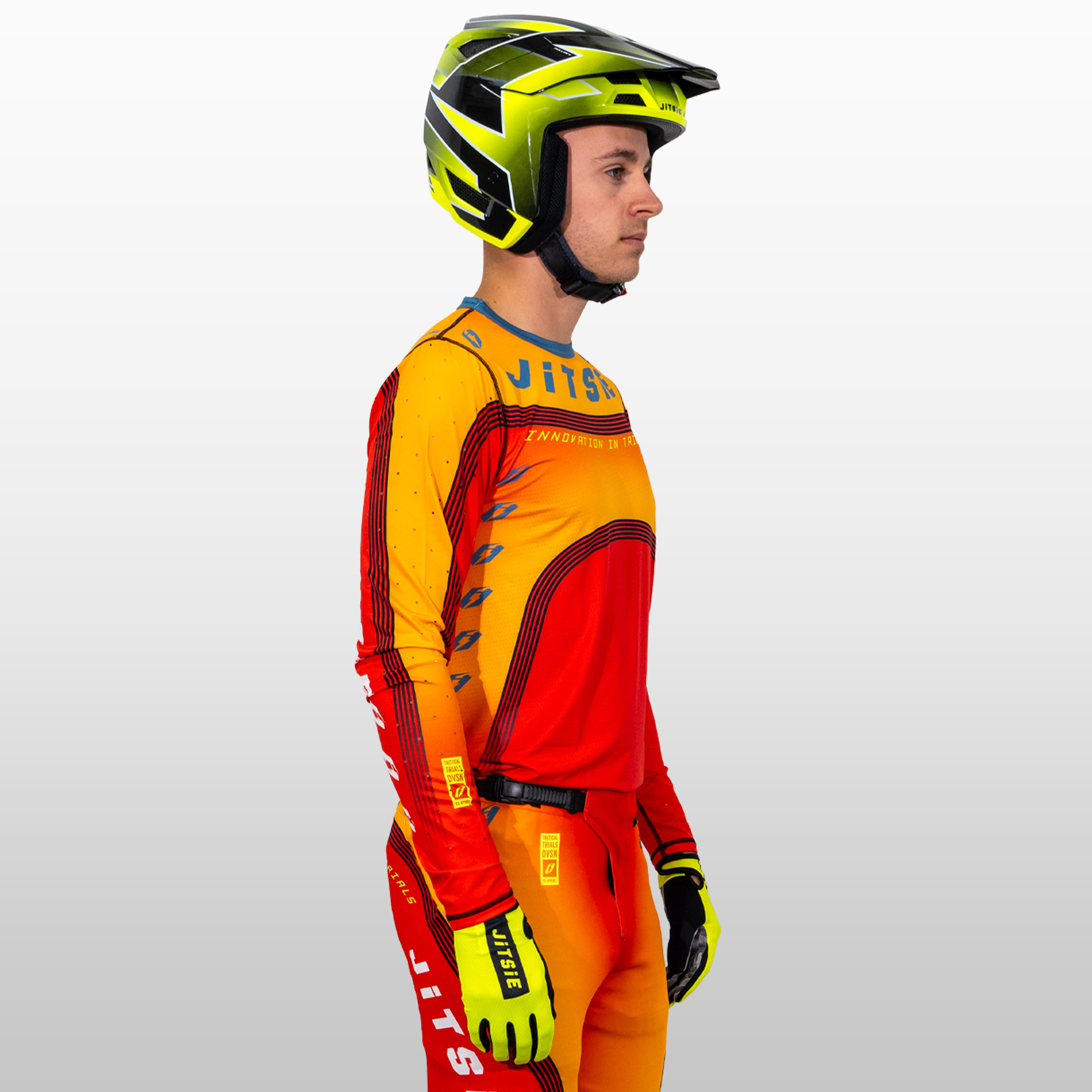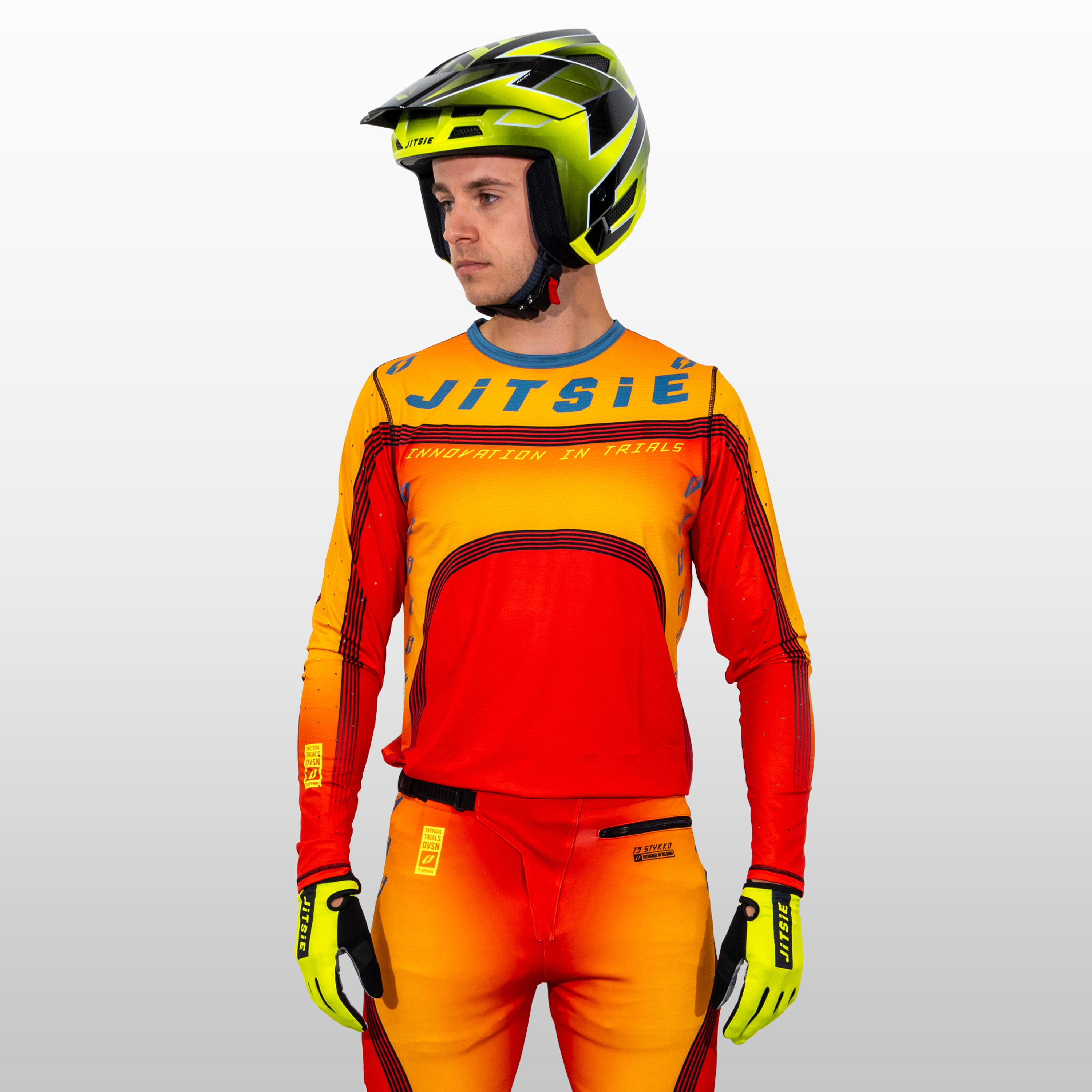 The T3 Stykko kit combines lightweight performance riding gear with bold colours to stand out in the sections.