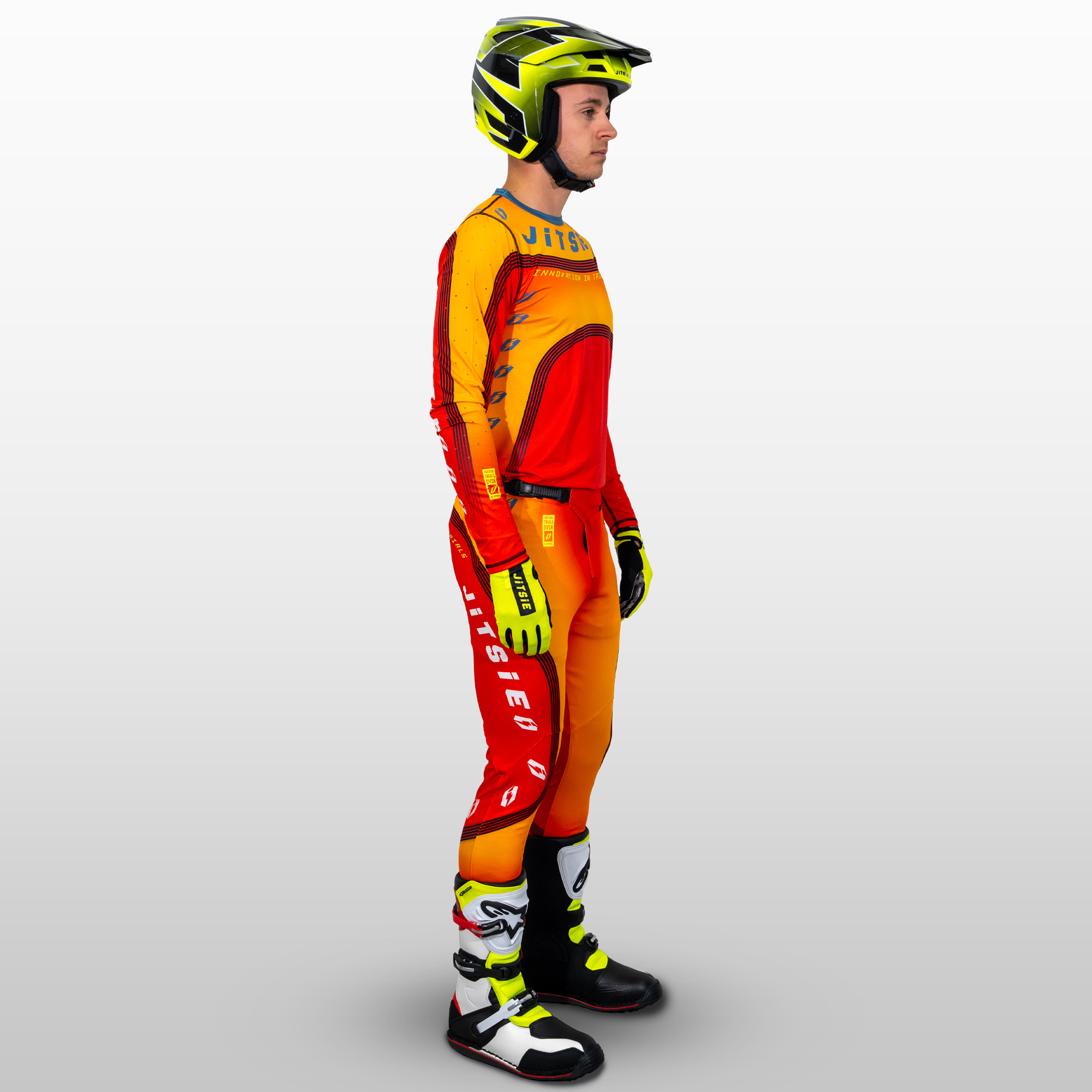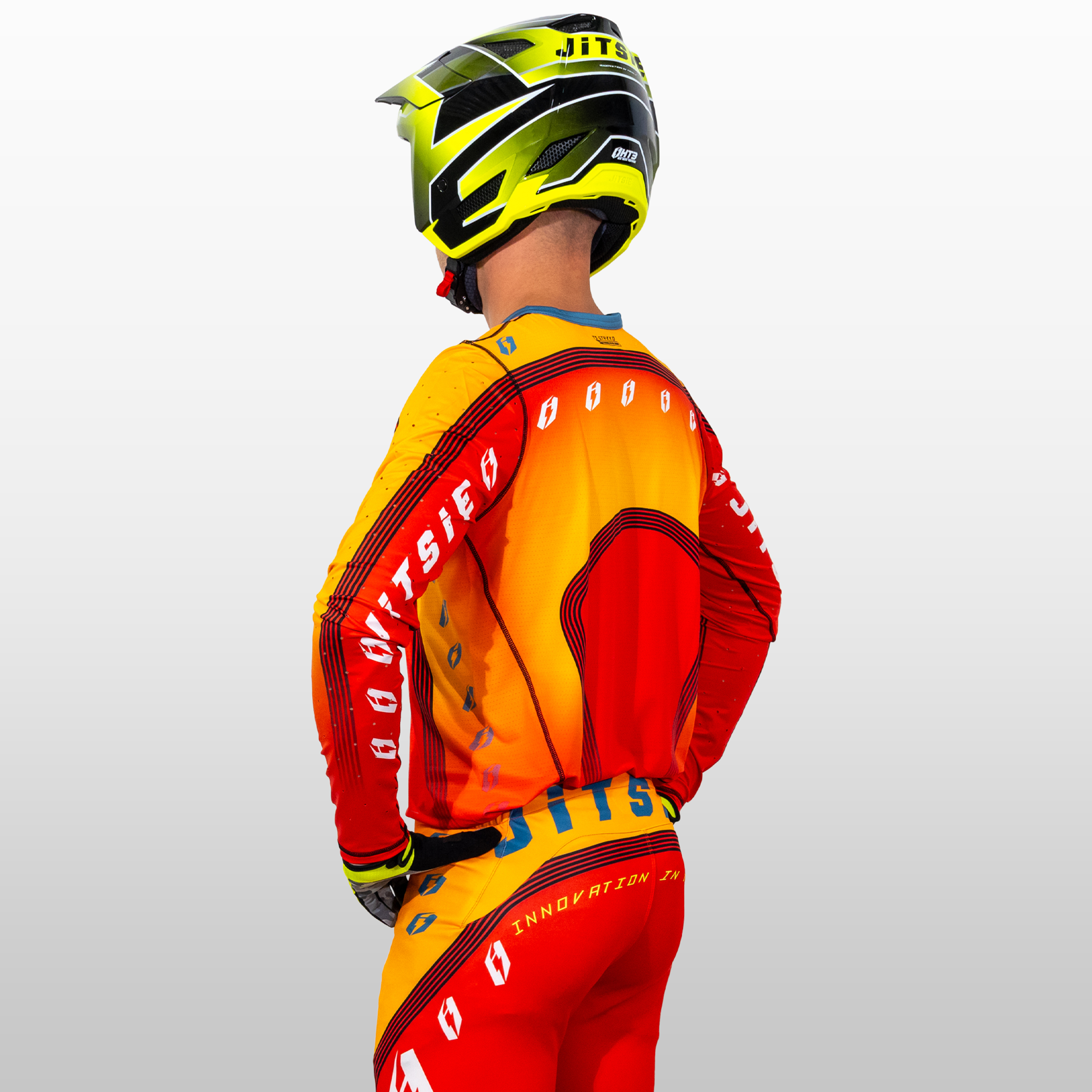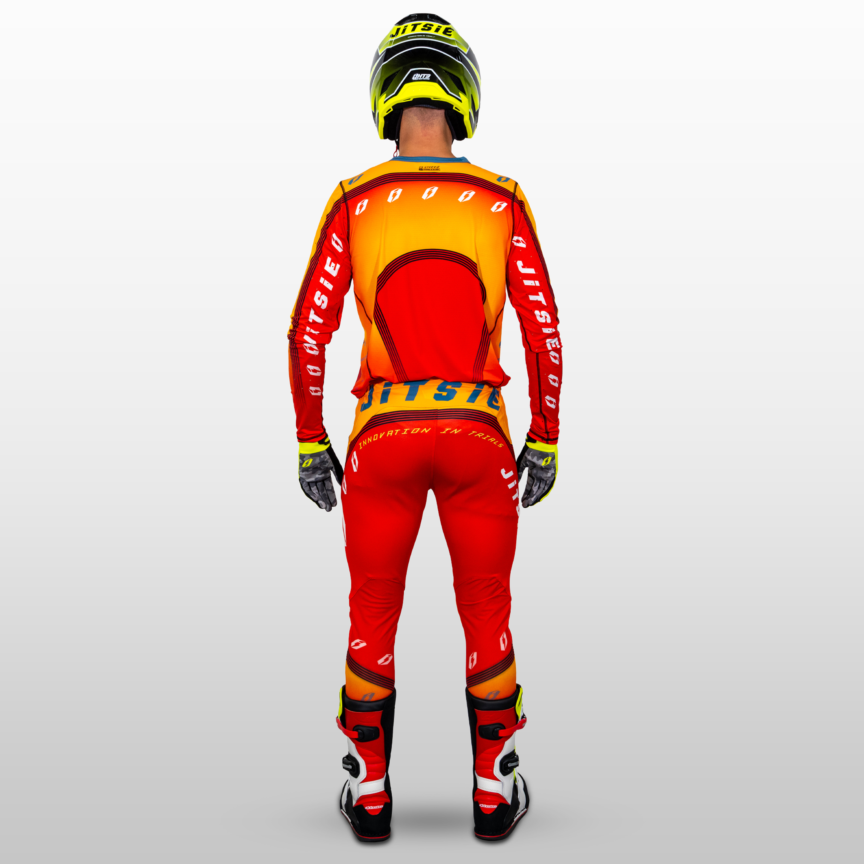 The T3 Stykko kit combines lightweight performance riding gear with bold colours to stand out in the sections.