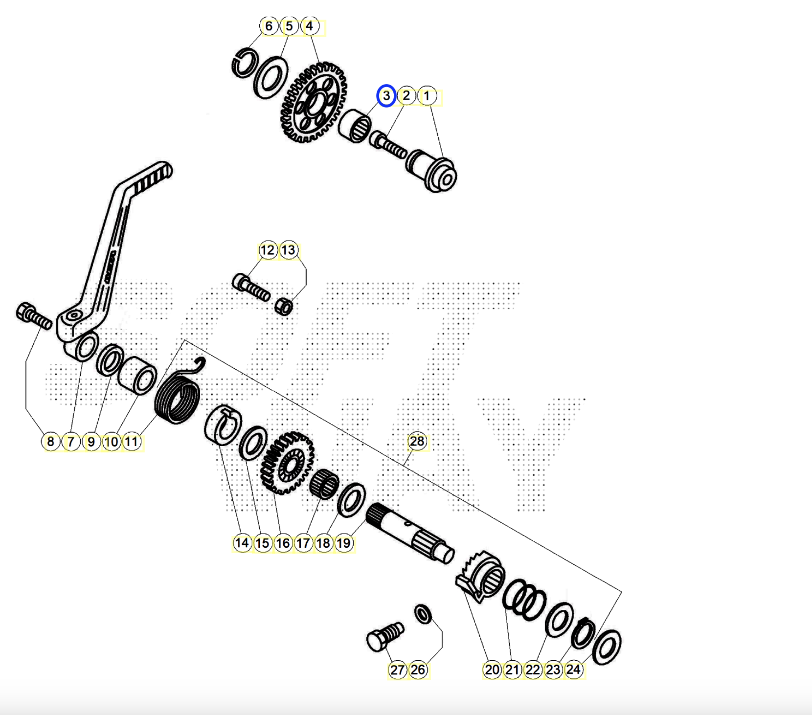 The Jitsie kickstart idle gear needle bearing for Beta Techno/Rev/Evo 2T models ensures smooth, consistent rotation of the kickstart mechanism. Installed inside the idle gear, it reduces friction and wear during engine starting, helping maintain a reliable and precise kick action.