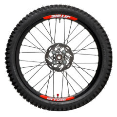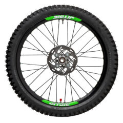 - kit includes 4 stickers for a 21″ front rim and 4 stickers for 18″ rear rim