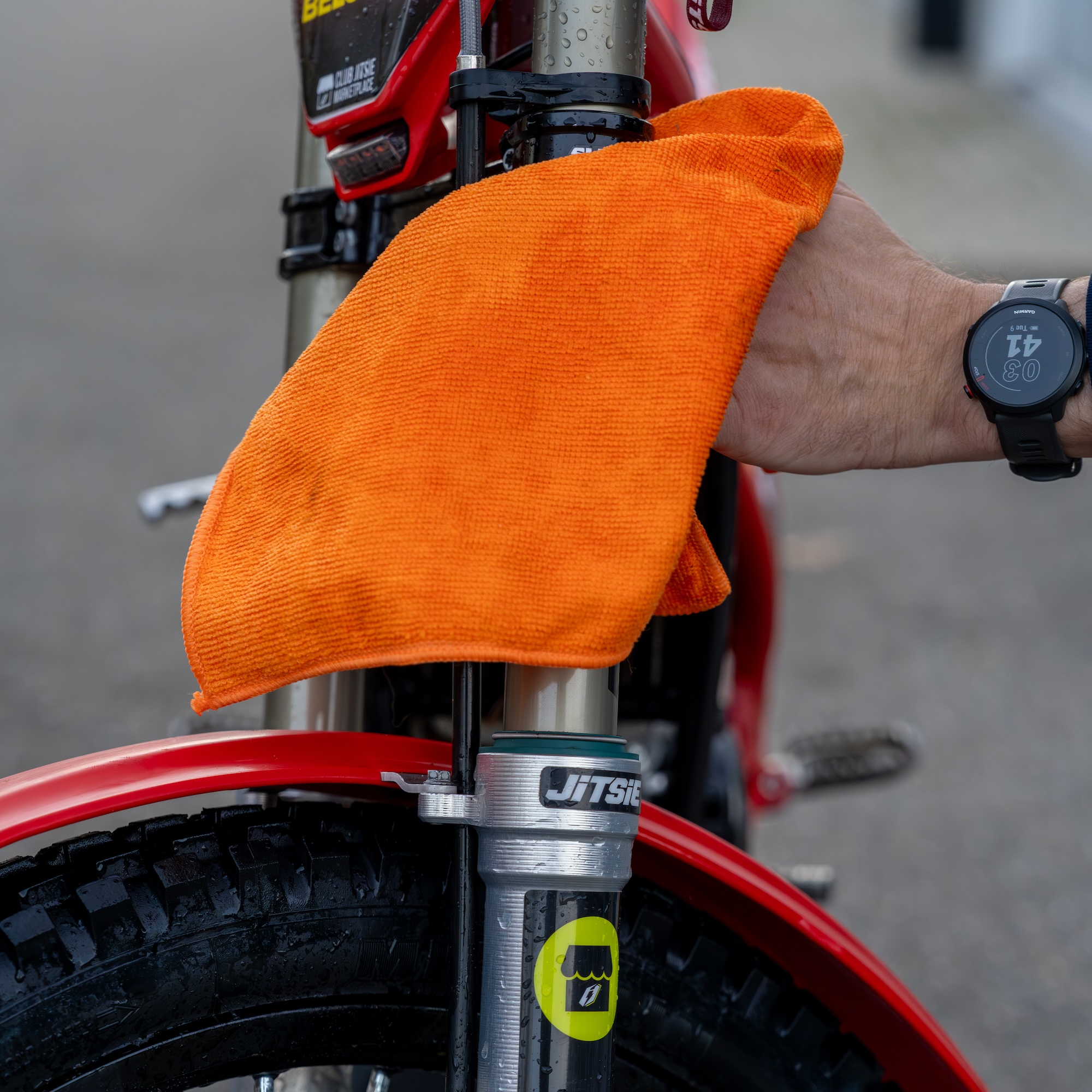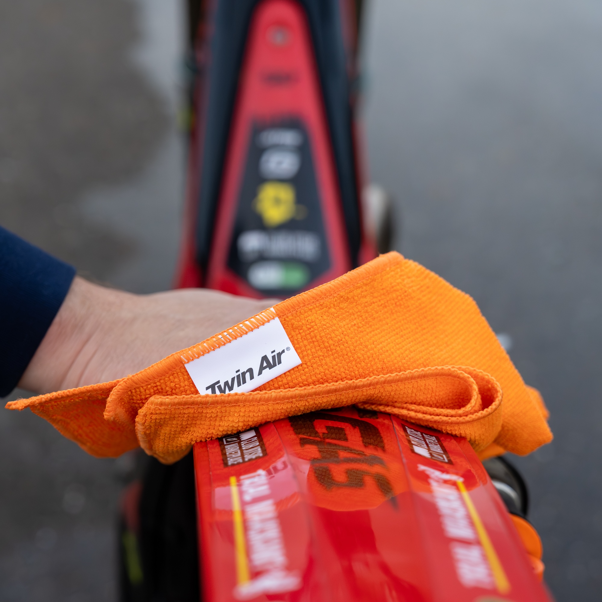 The Twin Air microfibre towel is designed for fast, effective drying and finishing during bike maintenance. Its soft yet highly absorbent microfibre construction lifts moisture, dust and fine dirt without scratching, making it ideal for plastics, frames, wheels and general workshop use. A perfect final-step towel whether you’re cleaning, polishing or preparing the bike for the next ride.