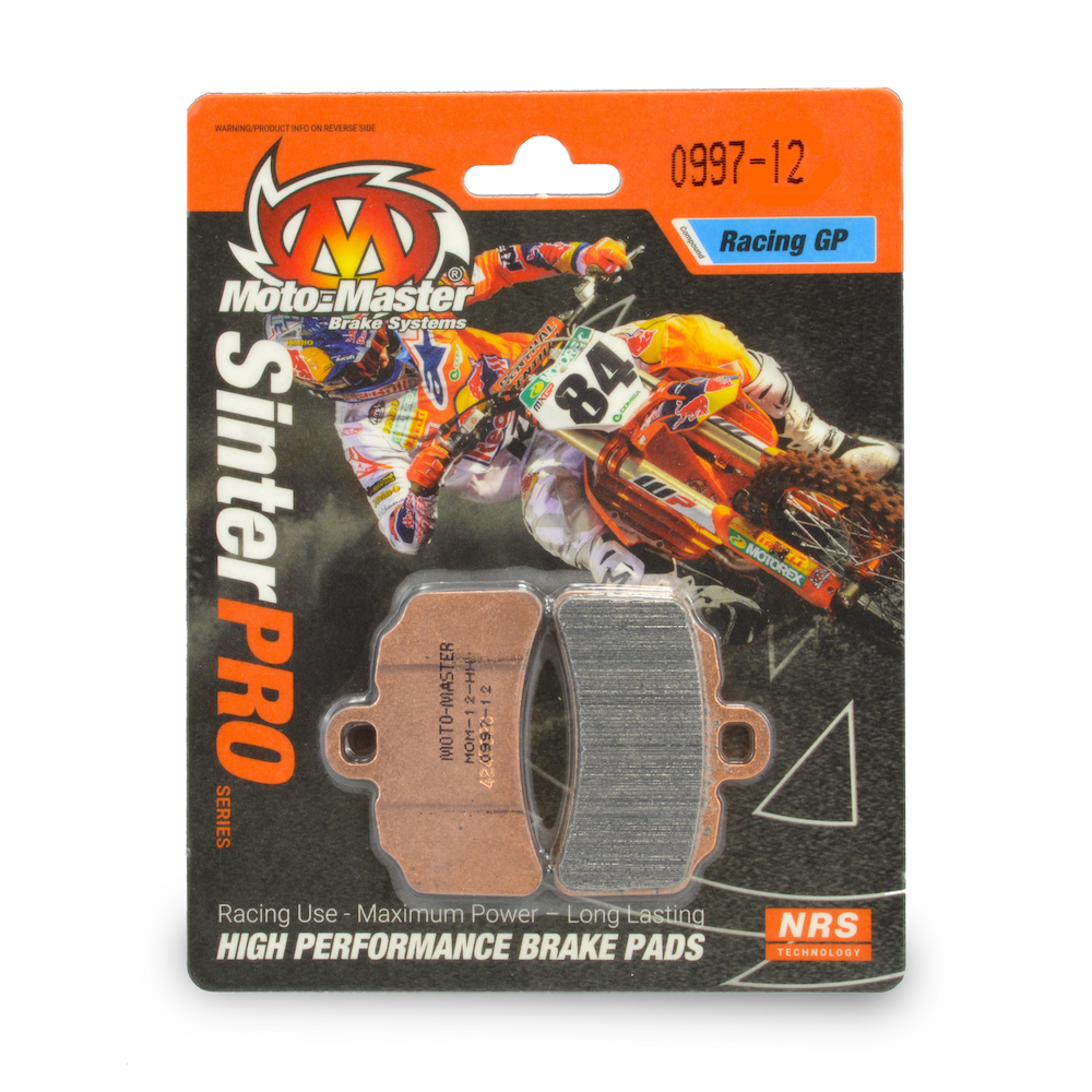 Moto-Master SinterPRO Racing GP Series brake pads combine maximum stopping power with high temperature resistance to eliminate any possible brake fade. Its high initial bite and linear feel allow aggressive and controlled deceleration.