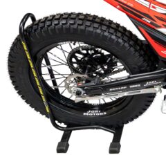 The Jitsie moto support stand makes parking and working on your trials bike easier than ever. Simply roll the bike backwards into the stand and it will stay upright, securely supported. Designed for quick and hassle-free use, it’s perfect for the workshop, paddock, or at home. Whether you’re carrying out maintenance or just need a stable parking solution, the Jitsie stand is a must-have for every rider.