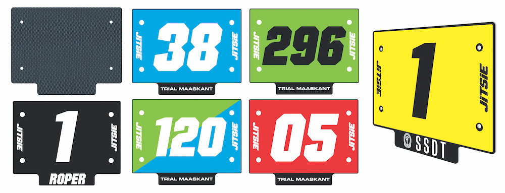 The Jitsie plastic front number board is a traditional flat-style number plate designed for a clean, classic look on any trials bike. Made from durable plastic, it’s lightweight and easy to mount using cable ties. Also available in a clear-window version, allowing you to place your rider number or card behind the transparent front panel for a professional finish.