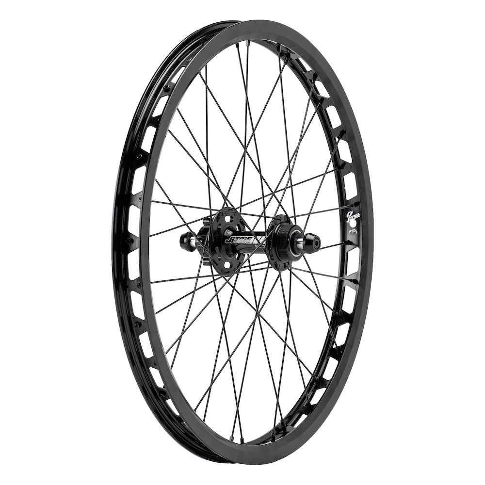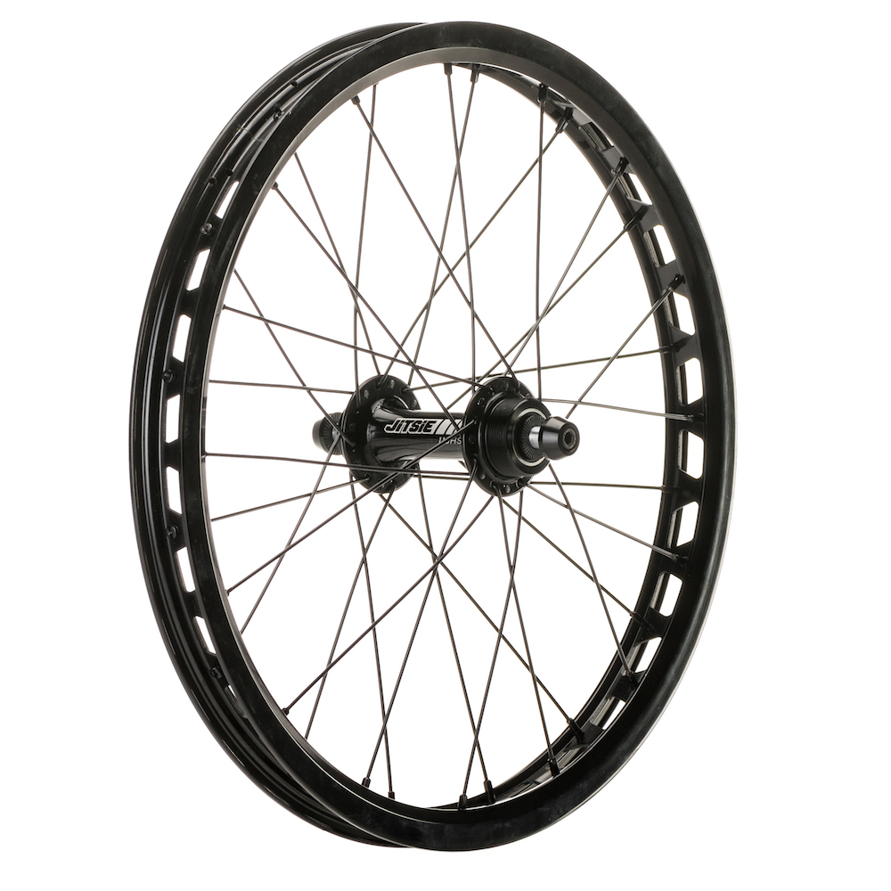 The Jitsie rear wheel is the standard front wheel used on Jitsie Varial bikes. Built around a reliable hub with bolt axle, it combines strength and durability at a great price point. Designed as a solid all-round option, it delivers dependable performance for everyday trials riding without the extra weight and cost of race-level components.