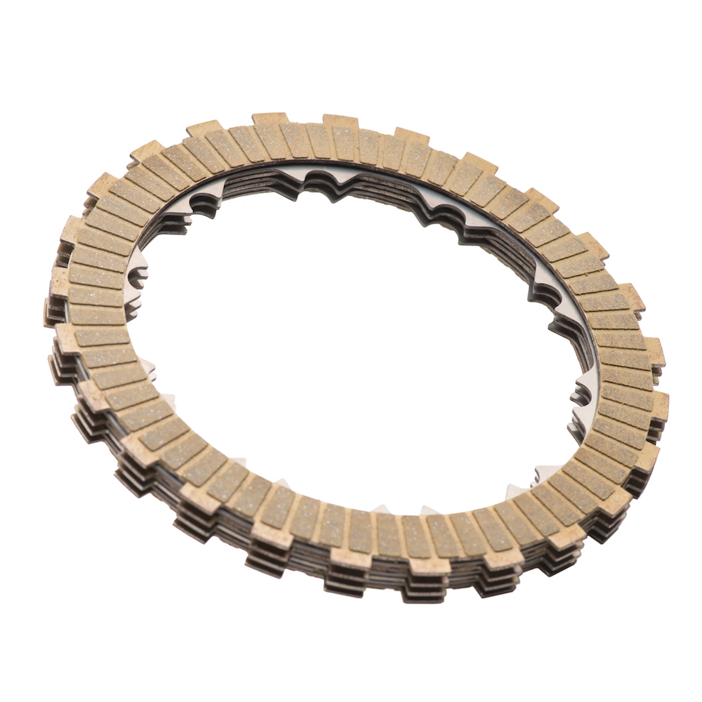 Clutch disc kit with kevlar and steel discs. Friction plates are made with Xiu-Rdi kevlar pads that offer a higher coefficient of friction and excellent resistance compared to the original clutch disc kit.