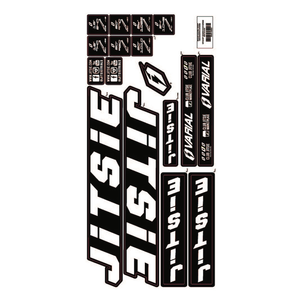 The Jitsie Varial 18/20/24/26″ bike sticker kit is the complete decal set for your Varial frame and fork. Whether you’re refreshing your bike’s look or replacing damaged decals after rides, this kit ensures your Varial bike returns to full visual spec. All original graphics are included in one easy package.