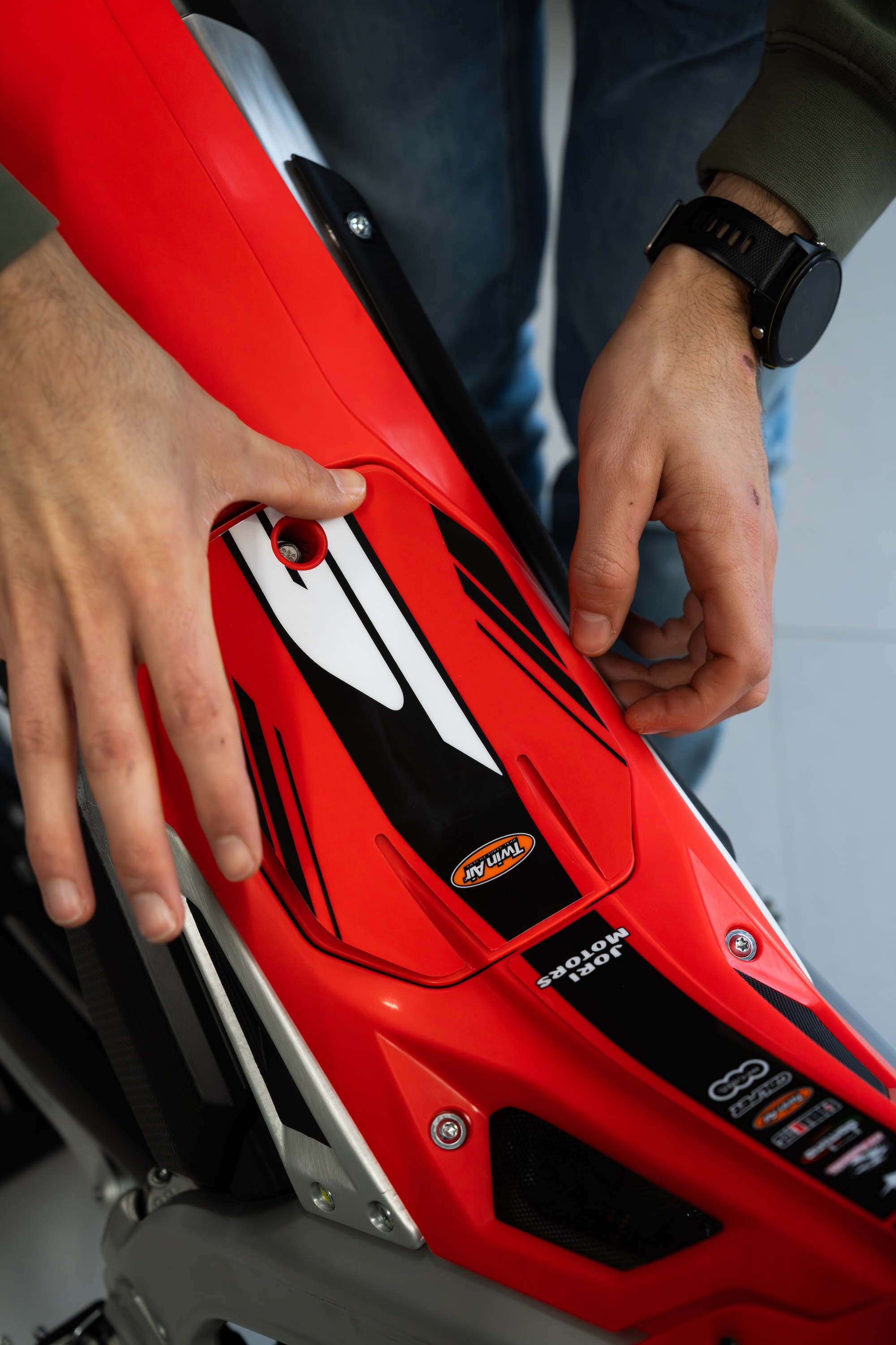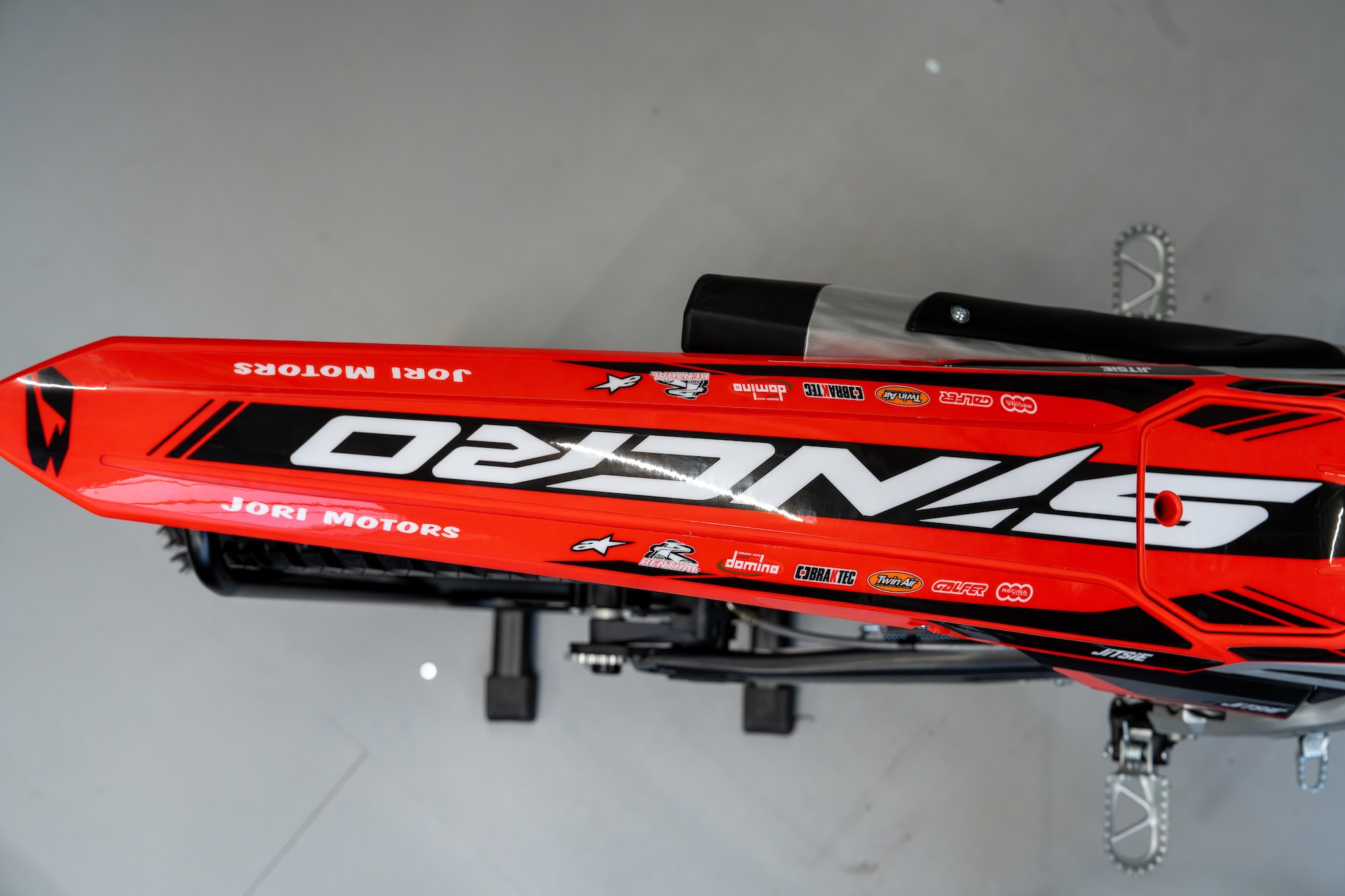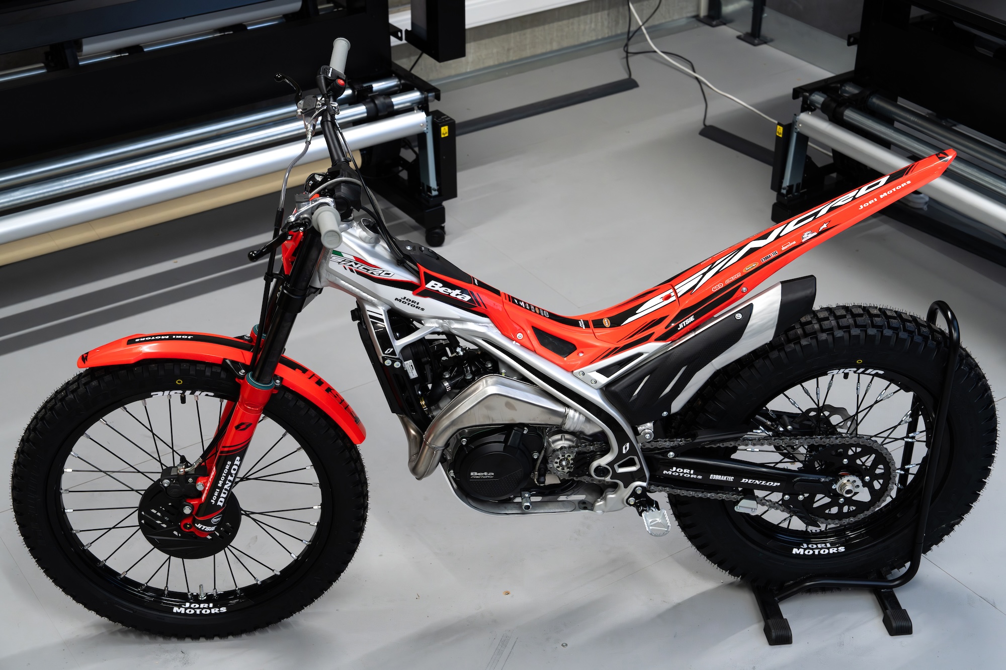 We recreated the original Beta Sincro 2026 sticker kit and personalised it with sponsor logos and Jori Motors shop name. The result is a factory style, precise sticker kit that stays true to the original style while giving the bike its own identity.