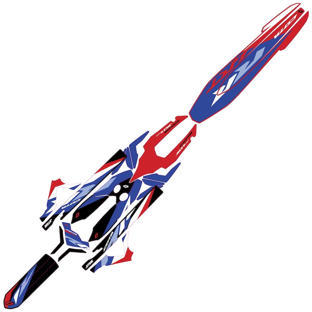 - kit includes stickers for the front mudguard, headlight, petrol tank, frame and rear mudguard