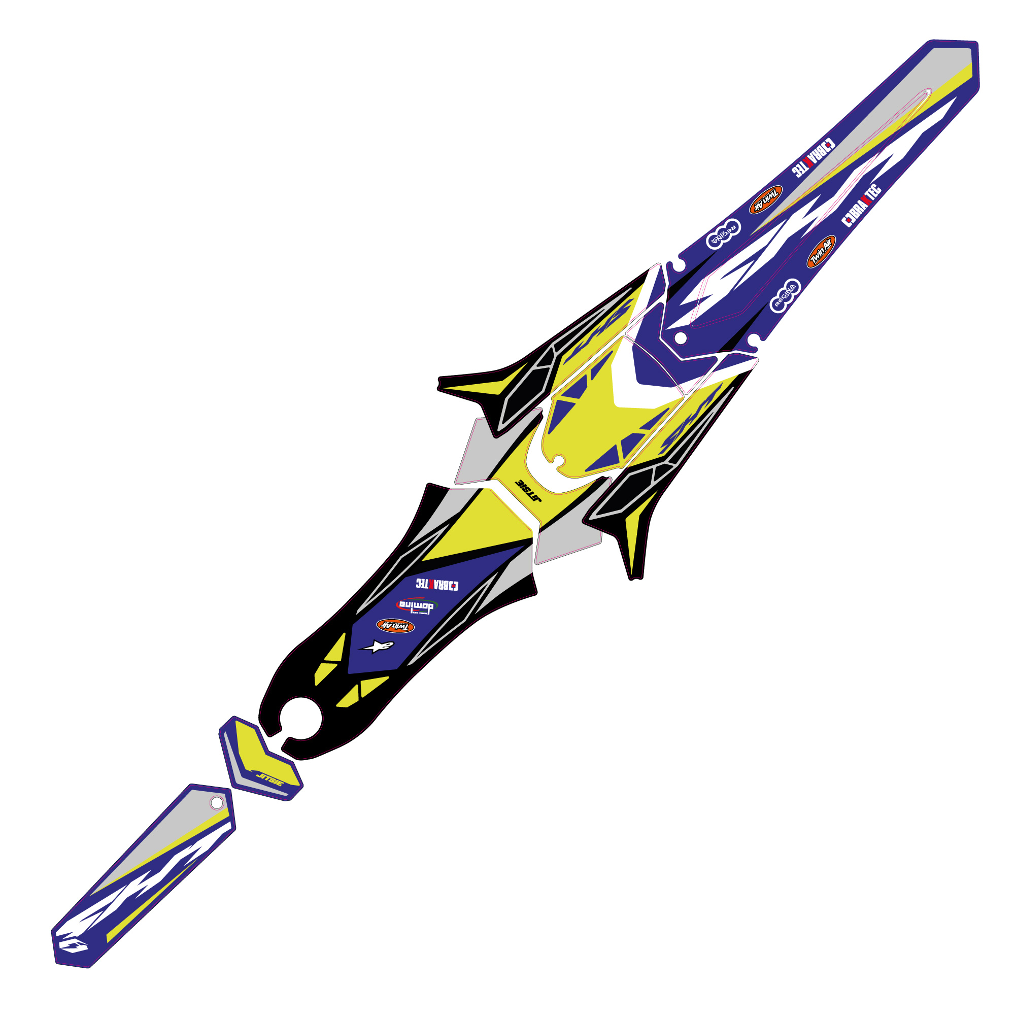 - kit includes stickers for the front mudguard, headlight, petrol tank, airbox and rear mudguard