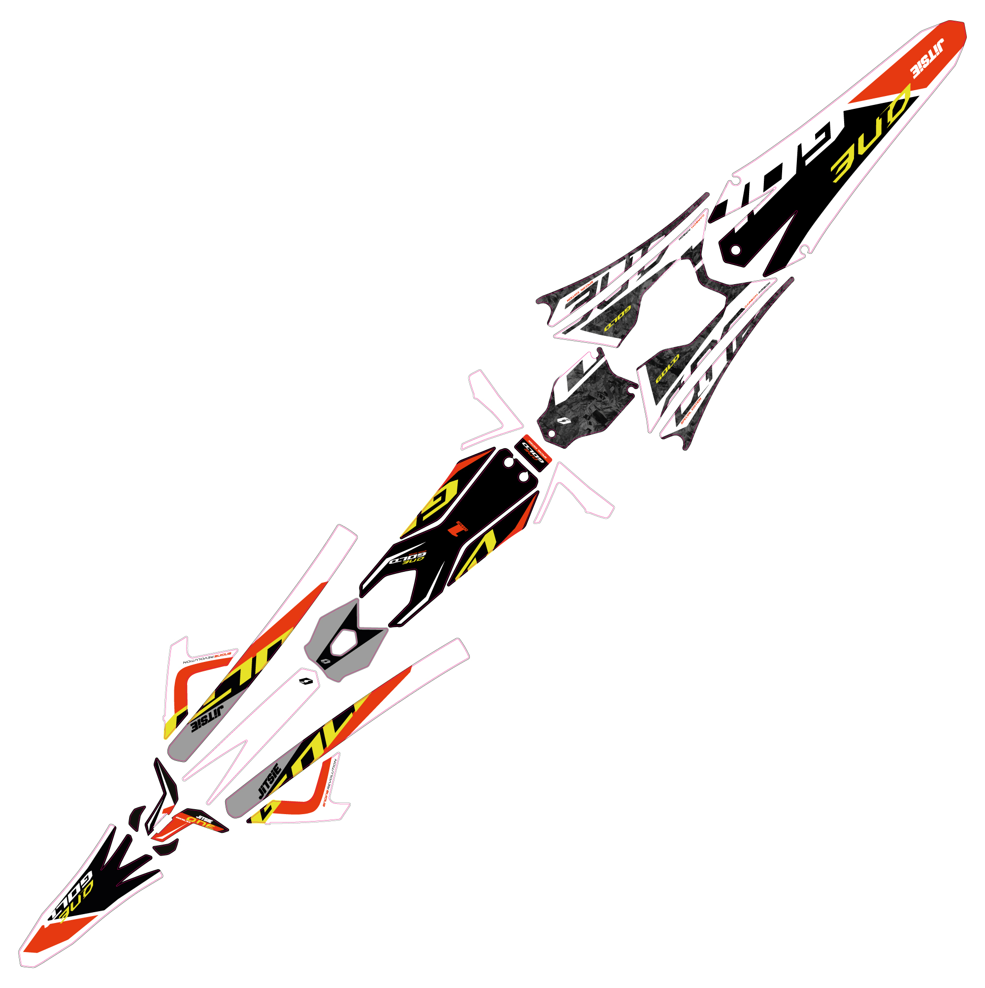 - kit includes stickers for the front mudguard, headlight, petrol tank, frame, air filter box and rear mudguard